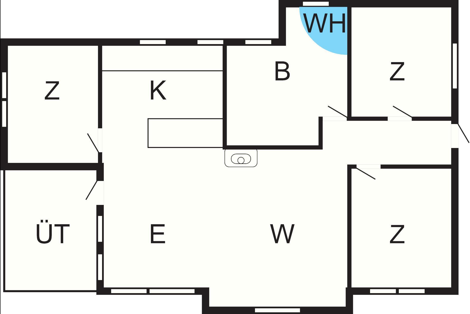 Bad: Waschm., WC, Waschb., Dusche, Fußbodenheiz.
