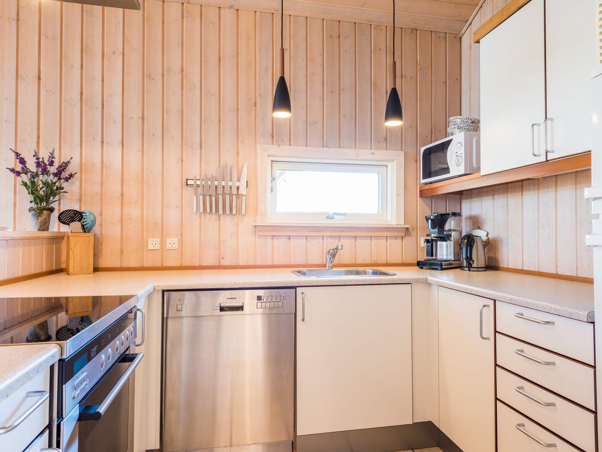 Wunderschönes, helles und geräumiges Ferienhaus mit richtig guter Einrichtung. Wohnzimmer und Küche stehen in offener Verbindung und sind - als Sammelpunkt für die ganze Familie - in der Mitte des Hauses plaziert. Alle Räume haben Decken bis zum Giebelund im Wohnzimmer ist ein Dachfenster - das gibt wunderbares Licht, egal ob Sommer oder Winter. Ausserdem hat das Haus eine schöne, grosse Holzterasse mit Aussicht über die Umgebung. Das Grundstück ist gut geeignet für alle möglichen Spiele/Ballspiele. Endreinigung ist im Preis enthalten!