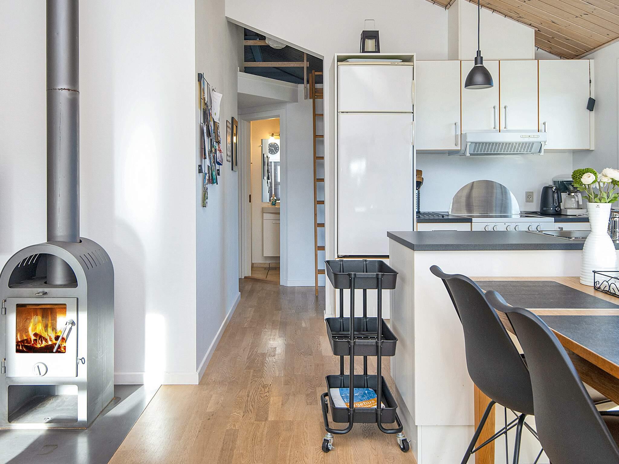 Dieses gemütliche Ferienhaus in Skaven Strand bietet einen komfortablen und einladenden Rückzugsort für bis zu 6 Personen. Das Haus ist in drei gut ausgestattete Schlafzimmer unterteilt, zwei mit Doppelbetten und eines mit zwei Einzelbetten. Das Wohnzimmer und die Küche sind offen gestaltet und schaffen eine geräumige und gesellige Atmosphäre. Ein Holzofen verleiht dem Raum Wärme und Charme, ideal zum Entspannen nach einem Tag voller Entdeckungen. Das Ferienhaus verfügt außerdem über ein großes Badezimmer mit Whirlpool und Sauna, das den idealen Rahmen für Entspannung bietet. Für zusätzlichen Komfort sorgt eine Fußbodenheizung, die im gesamten Haus für wohlige Wärme sorgt.