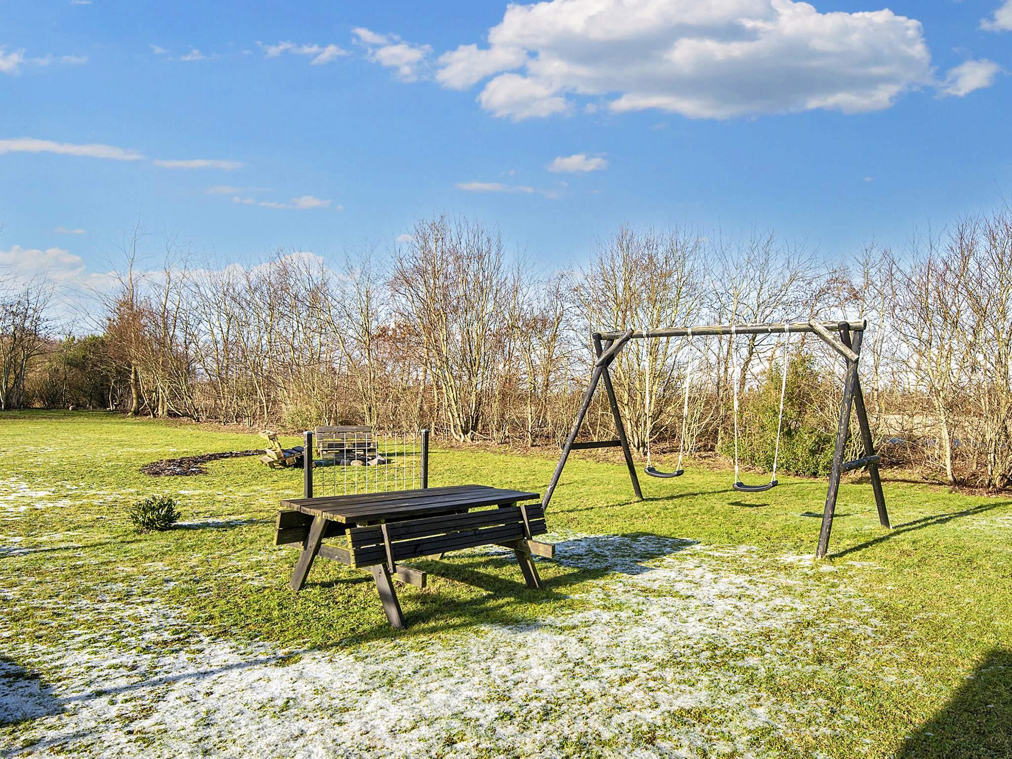 Der Außenbereich ist ebenso einladend, mit einem wunderschönen Naturgarten von 1200 m². Der Garten ist ideal für Aktivitäten im Freien, wie z. B. Snobrød am Lagerfeuer zu machen, auf dem Trampolin zu spielen und zu schaukeln. Gemütliche Ecken und ein Innenhof mit Gartenmöbeln und Liegestühlen laden zum Entspannen ein. Die überdachte Terrasse und der Gartengrill machen den Aufenthalt im Freien noch angenehmer und bieten viele Möglichkeiten zum Essen und Entspannen im Freien. Das Haus verfügt außerdem über eine Luft/Luft-Wärmepumpe, die das ganze Jahr über für Komfort sorgt.