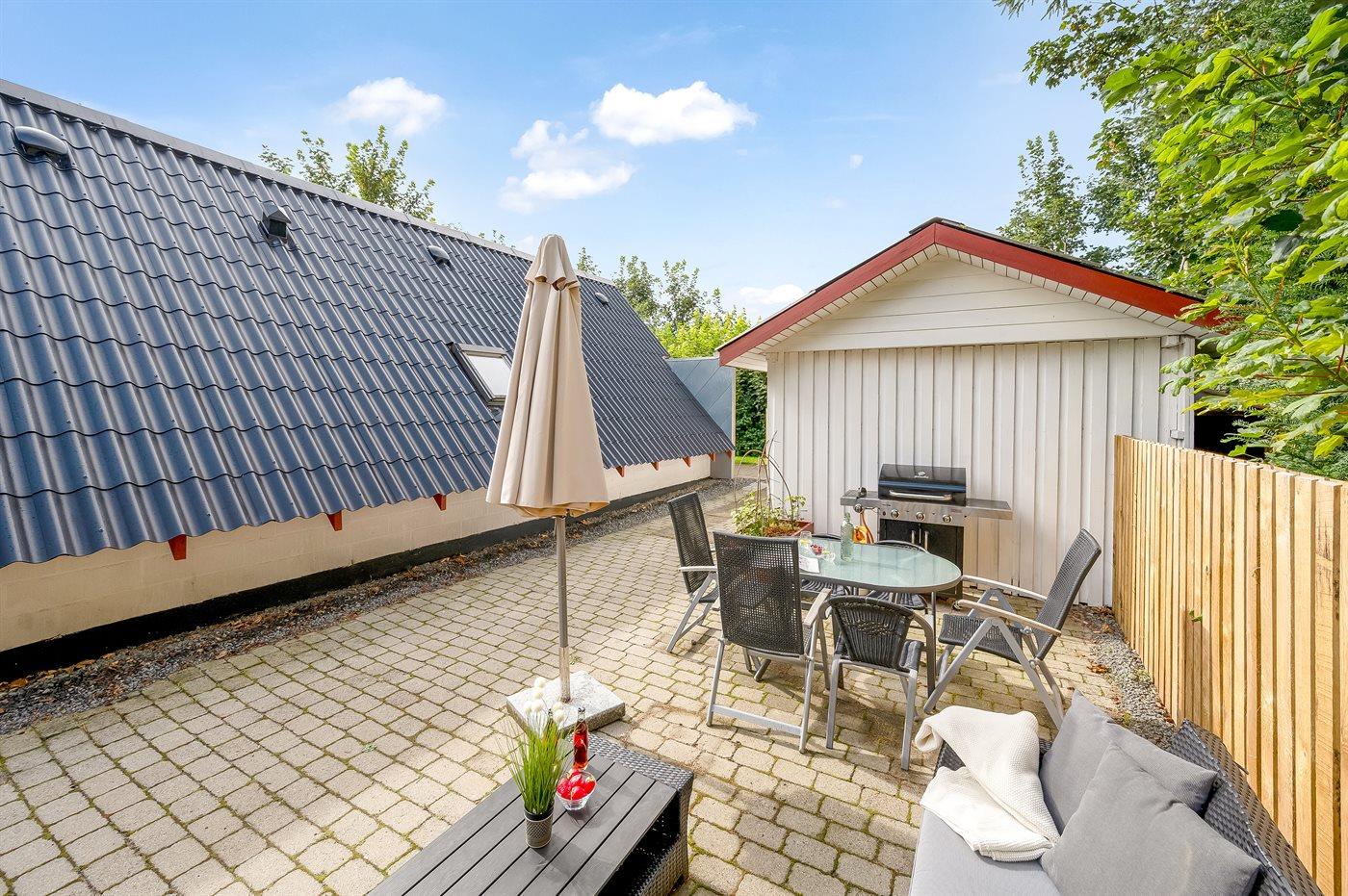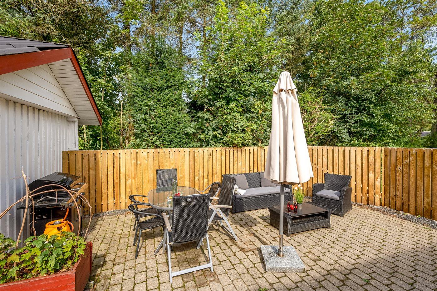 Das Grundstück ist zum größten Teil eingezäunt - zum Vorteil für Kinder und Haustiere. Außenküche und Gasgrill. Auf dem Grundstück finden Sie ferner Fußballtore, Sandkasten und Schaukel.