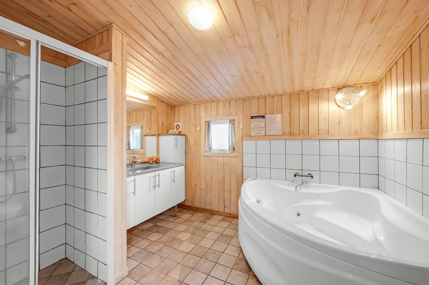 Es gibt 2 Badezimmer mit Duschnische und 2 Toiletten. Fußbodenheizung in 1 Badezimmer. Es steht eine Sauna zur Verfügung in der Sie sich so richtig entspannen können.