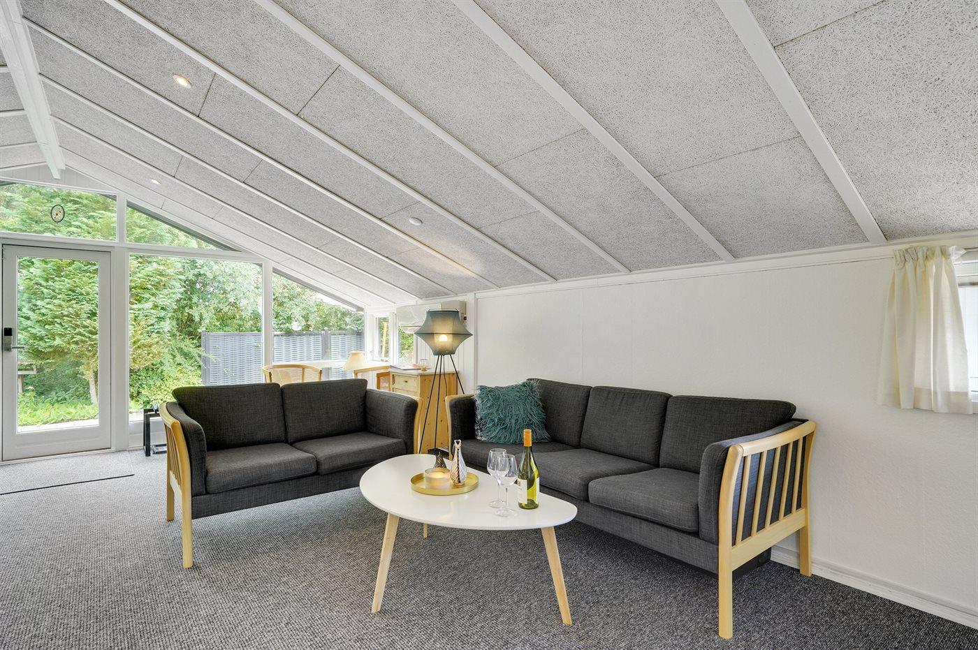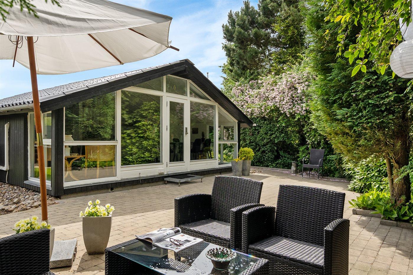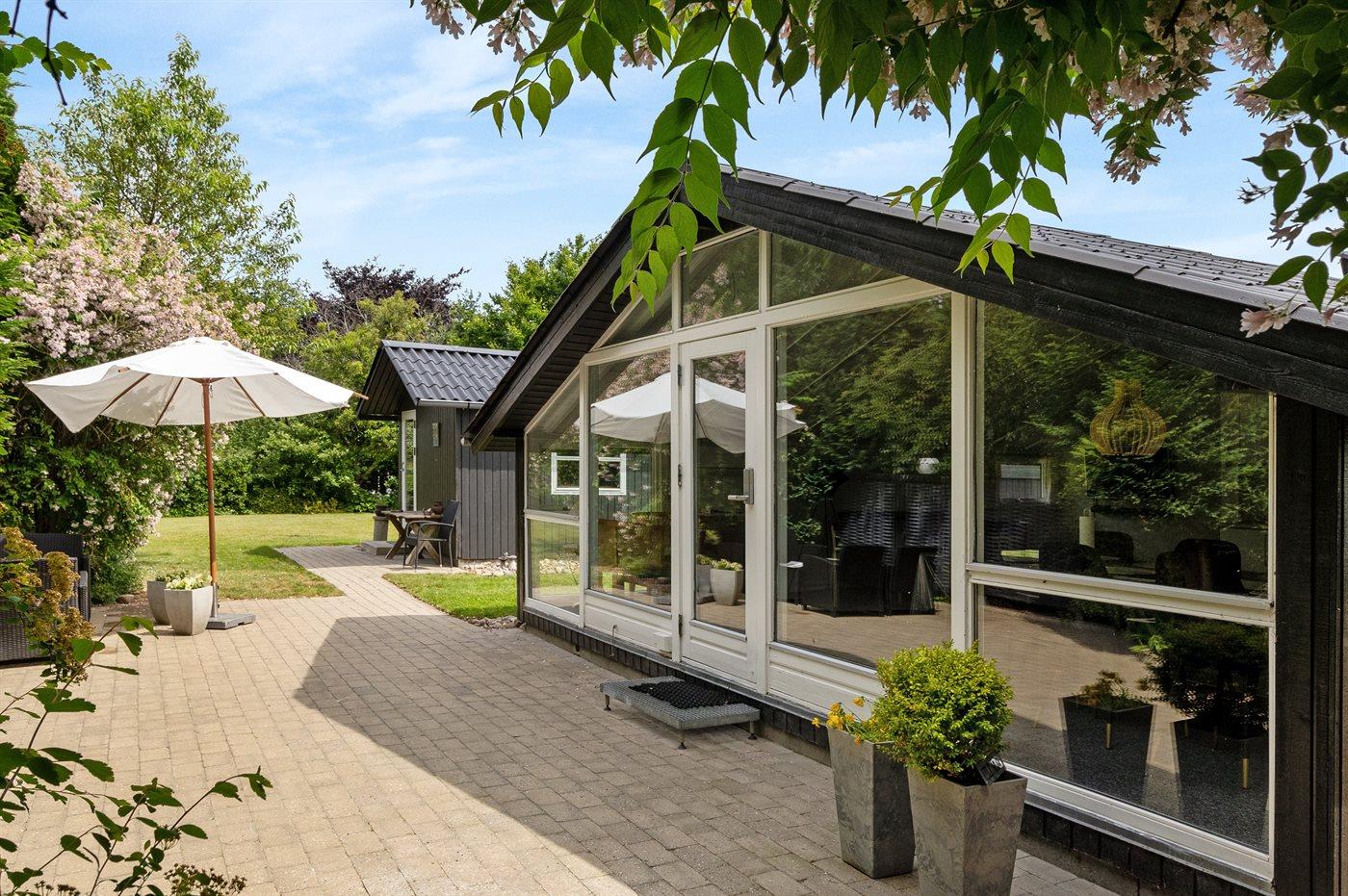 Gemütliches Ferienhaus aus Holz mit Wintergarten nahe Ringkøbing Fjord in Dänemark, ideal für Naturliebhaber und Familien.
