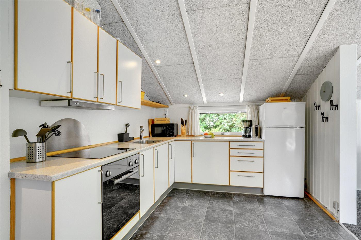 Ein gutes Ferienhaus aus Holz, 1974 gebaut und 1993 renoviert, auf einem schönen Naturgrundstück - ca. 780 m vom Ringkkøbing Fjord entfernt gelegen. Zum Haus gehört Terrasse mit Gartenmöbeln und ein schöner Wintergarten. Innen sind die Wände und Decken mit Holz verkleidet. Teppichböden, jedoch PVC-Boden in der Küche. Die gute Küche (2007) ist u. a. mit Mikrowelle und Tiefkühlgerät ausgestattet. Im nett möblierten Wohnzimmer finden Sie Radio, DVD-Spieler, Video und TV mit digitalem Satellitenanschluss. Die Schlafplätze verteilen sich auf 2 Zimmer, beide mit je 2 Einzelbetten. Kostenlose Internetverbindung vorh. (eigener Computer ist mitzubringen).Gästehaus und Carport auf dem Grundstück. Sandkiste für die Kinder. Das Haus liegt in einem Gebiet mit guten Angel- und Surfmöglichkeiten.