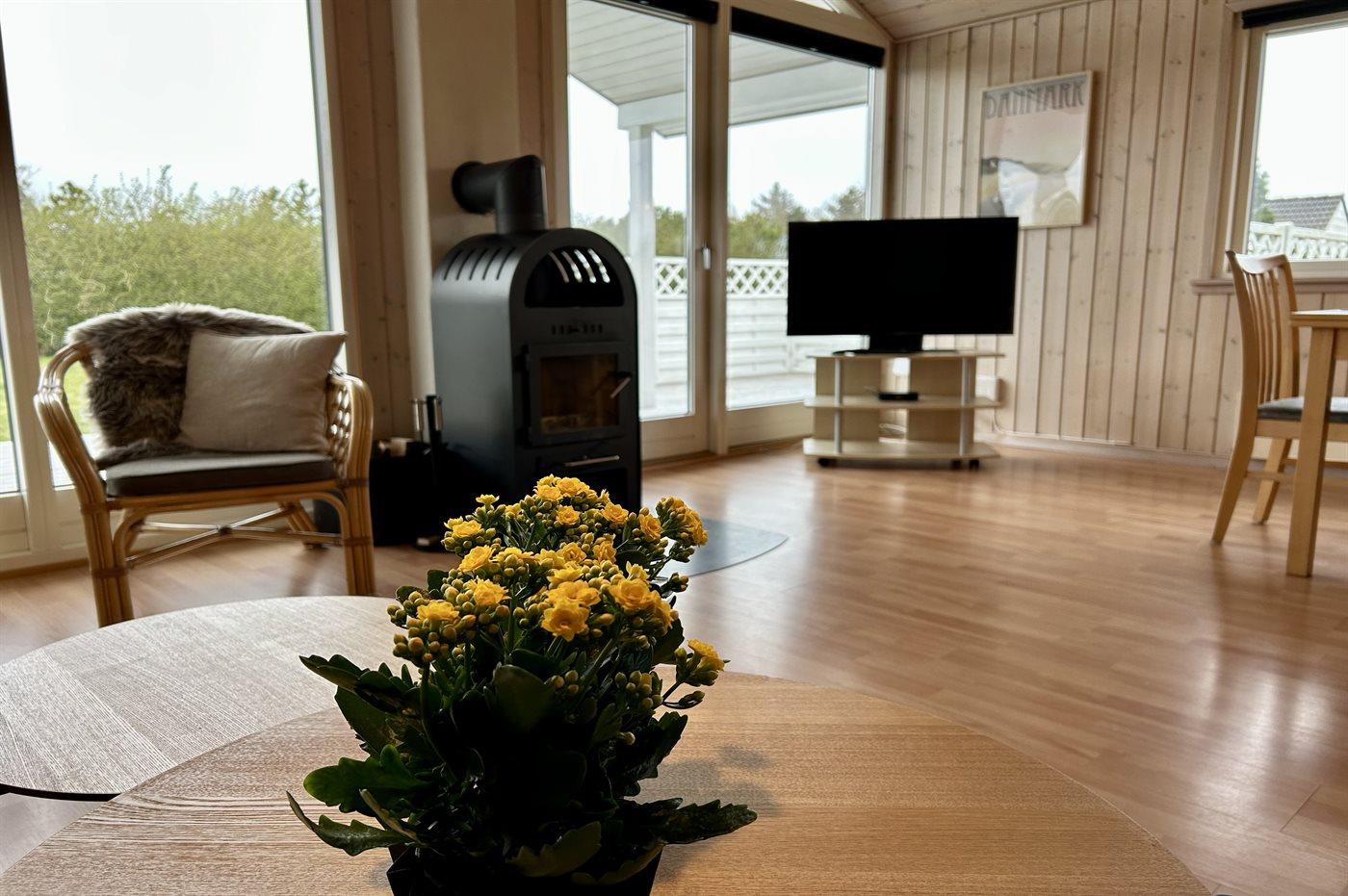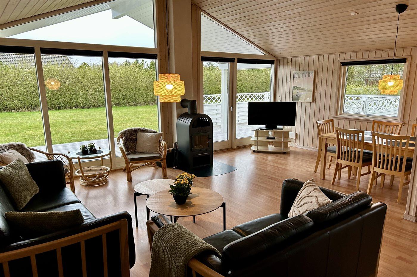 Modernisiertes Ferienhaus bei Skaven Strand mit Sauna, Kaminofen und großer Terrasse für erholsame Tage.