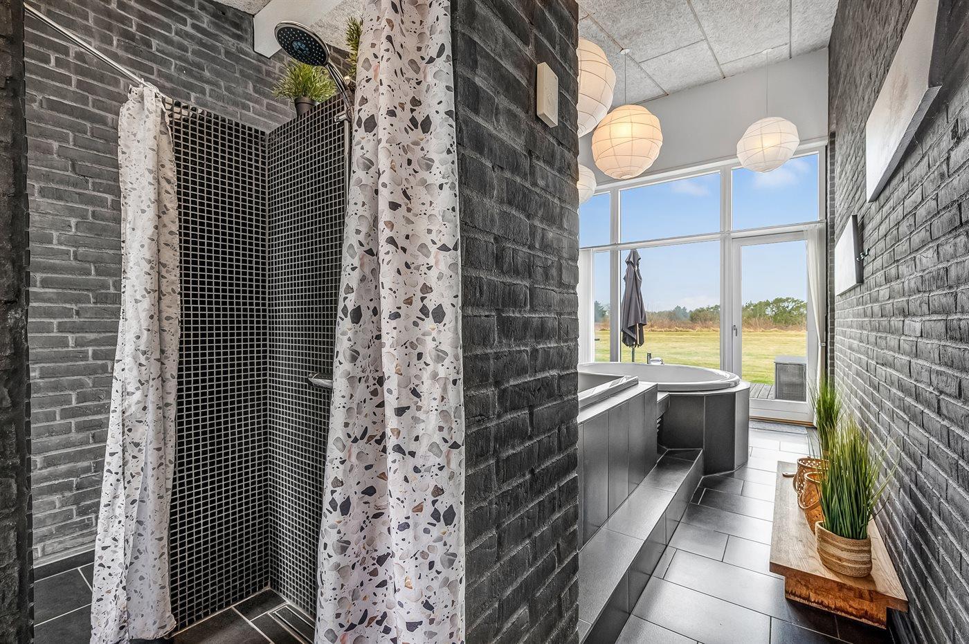 Das exklusive und geschmackvoll eingerichtete Badezimmer ist wie gemacht für Wellness und Entspannung – mit Dusche, Badewanne und einem Whirlpool für 4 Personen. Von hier aus hast Du einen wunderbaren Blick auf das Grundstück und das Naturschutzgebiet – pure Erholung! Zusätzlich stehen Dir eine Waschmaschine und ein Trockner zur Verfügung, was Deinen Urlaub noch komfortabler macht.