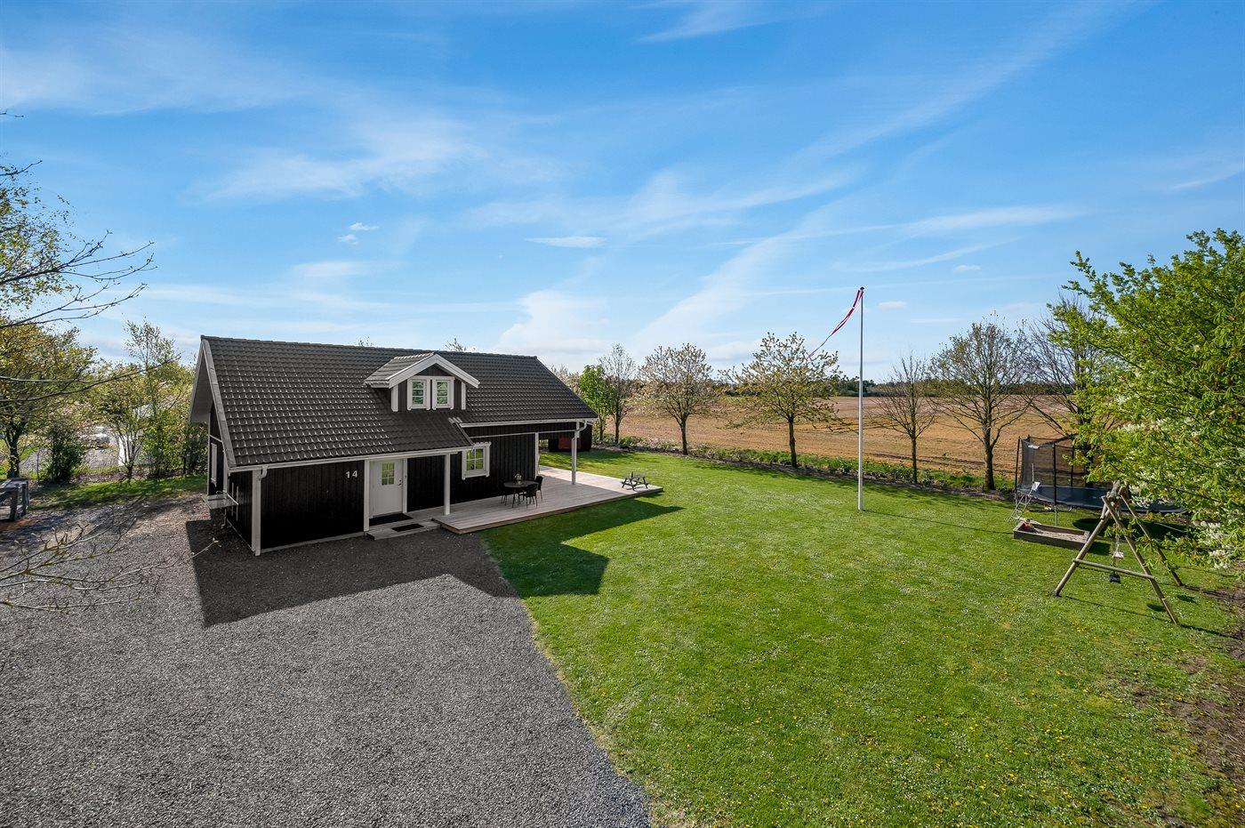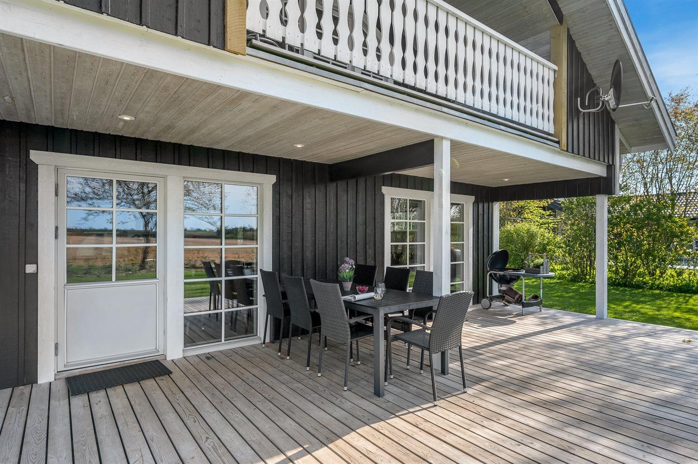 Schönes, schwedisches Holzhaus in 2 Etagen und aus Qualitätsmaterialien gebaut. Vom Balkon des Hauses gibt es einen herrlichen Blick auf den angrenzenden offenen Feld.