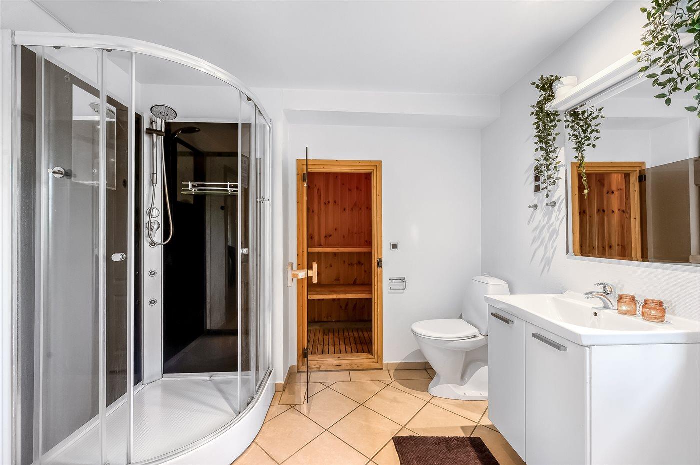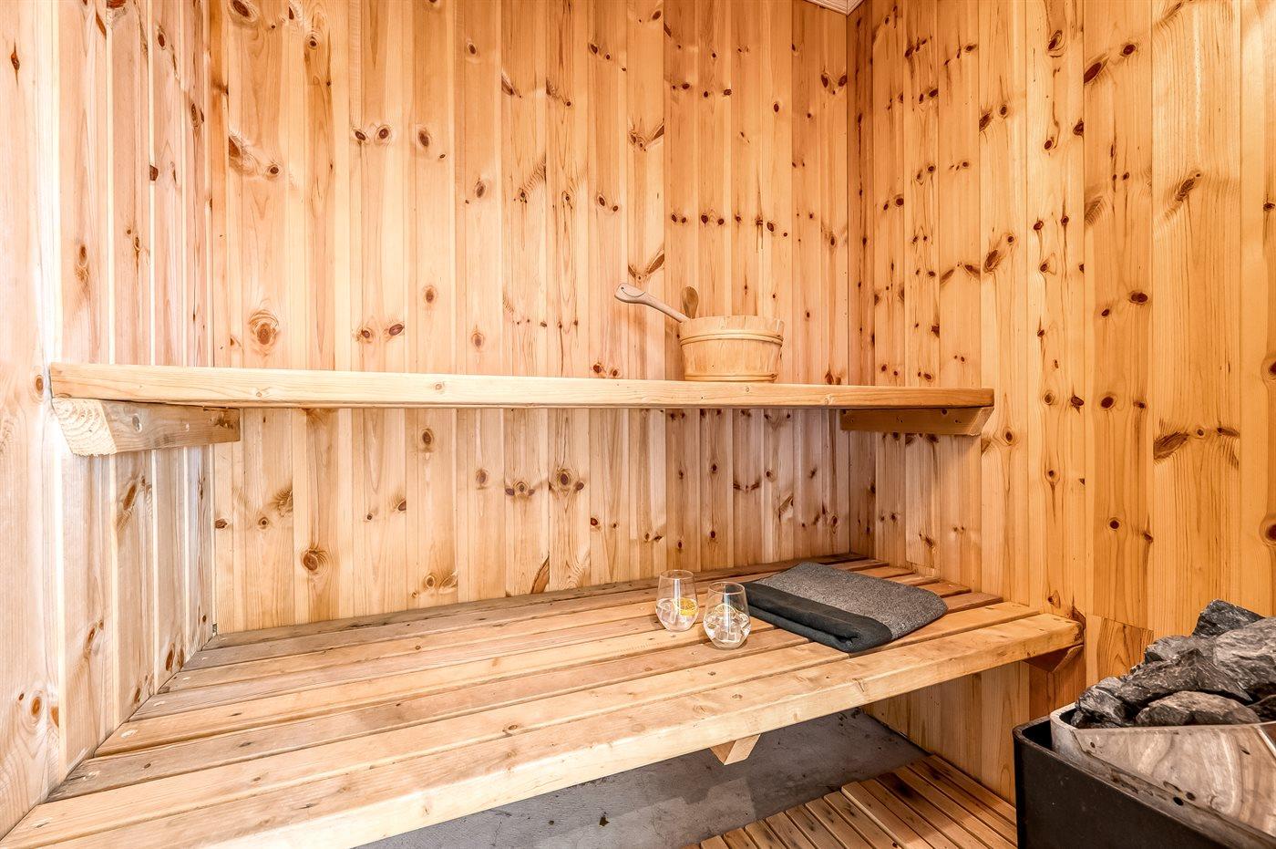 Es gibt 2 Badezimmer mit Duschnische und 2 Toiletten. Fußbodenheizung in 1 Badezimmer. Es steht eine Sauna zur Verfügung in der Sie sich so richtig entspannen können.