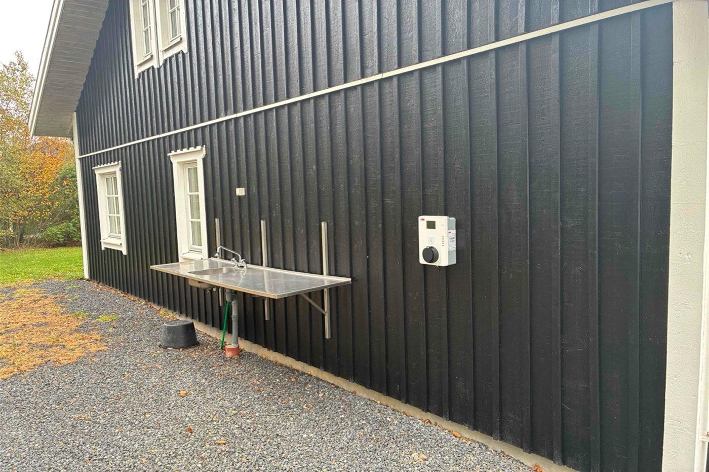 Die Ferienunterkunft liegt auf einem 1000 m² großen Naturgrundstück. Die Entfernung zum Meer beträgt 13500 m. Die Entfernung zum Fjord beträgt 850 m. Die nächste Einkaufsmöglichkeit liegt 400 m entfernt. Außerdem gibt es 20 m² überdachte Terrasse. Sandkasten. Es ist ein Ladestecker für Elektroautos installiert. Ladestecker Typ 2. Mit einer Ladeleistung von 11 kW. Parkplatz auf dem Grundstück.