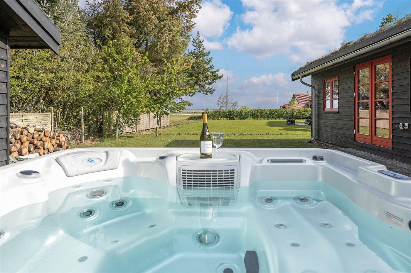 Entdecken Sie dieses charmante Ferienhaus bei Skaven Strand mit herrlichem Fjordblick und entspannendem Außen-Whirlpool.