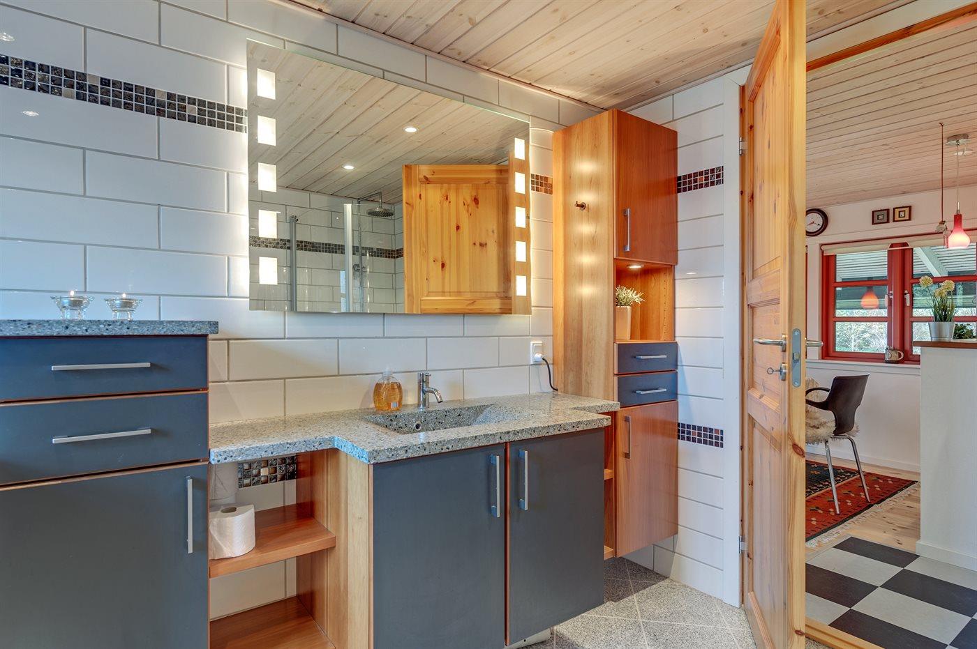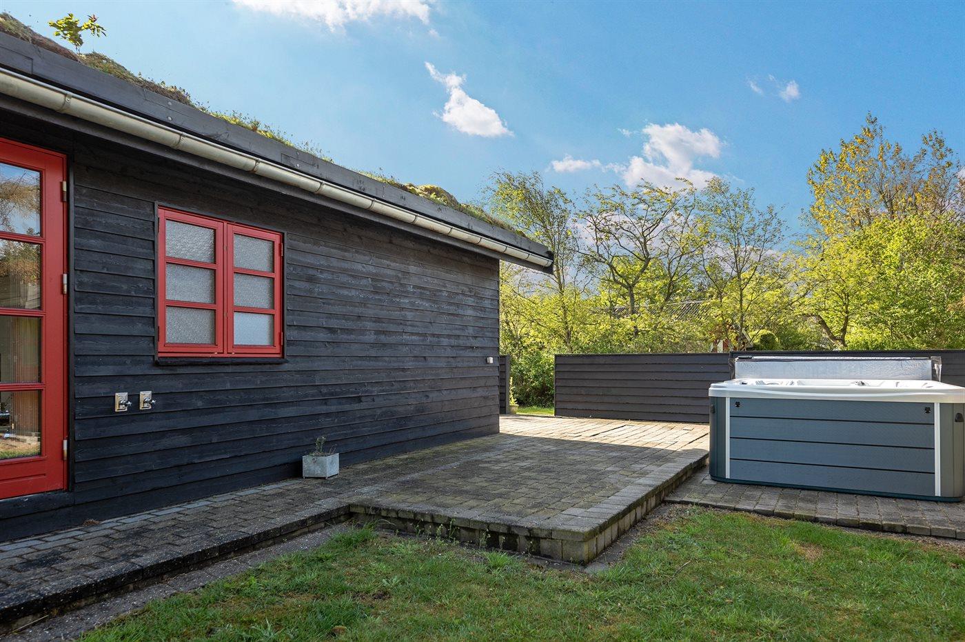 Die Ferienunterkunft liegt auf einem 852 m² großen Gartengrundstück. Das Grundstück ist eingezäunt. Die Entfernung zum Meer beträgt 13000 m. Die Entfernung zum Fjord beträgt 100 m. Die nächste Einkaufsmöglichkeit liegt 300 m entfernt. Es steht ein 57 m² Terrassenareal zur Verfügung. Außerdem gibt es 6 m² überdachte Terrasse. Schaukel. Sandkasten. Außendusche mit heißem und kaltem Wasser. Es stehen ein Weber Kugelgrill sowie ein Weber Gasgrill zur Verfügung. Parkplatz auf dem Grundstück.