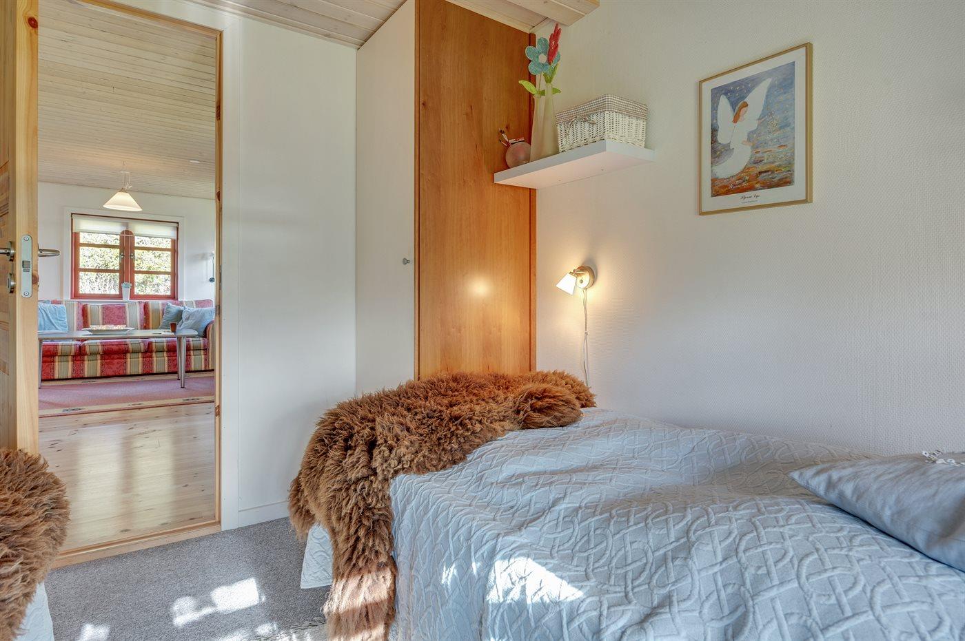 Die Schlafplätze verteilen sich auf 3 Schlafräume. 2 Schlafplätze in einem Doppelbett. 2 Schlafplätze in Einzelbetten. 2 Schlafplätze in einem Etagenbett. Ferner steht ein Kinderbett zur Verfügung.