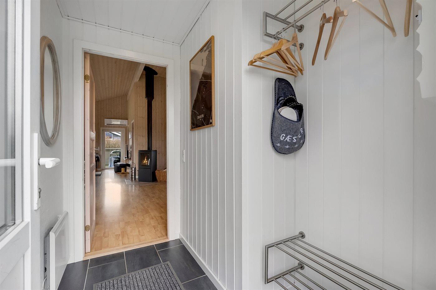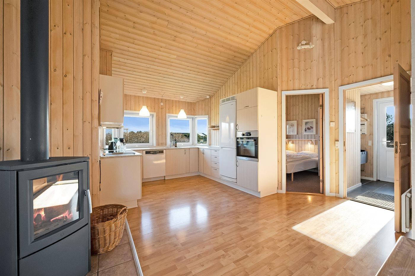 Hübsches, gepflegtes Ferienhaus im gemütlich-malerischen Feriengebiet Skaven Strand in der Nähe des Ringkøbing Fjords. Das Haus liegt am Ende einer Sackgasse. Auf dem Nachbargrundstück befindet sich ein Gemeinschaftsspielplatz und ein Fußballtor. Im Haus gibt es eine Schlafnische, in der sich 2 der Schlafplätze befinden.