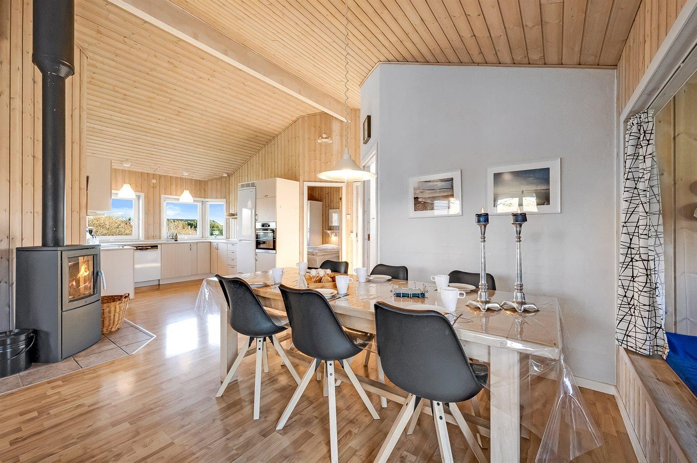 Das Ferienhaus eignet sich für 8 Personen sowie 1 Kleinkind bis zu 3 Jahren. 2 der Schlafplätze eignen sich jedoch nur für größere Kinder (4-11 Jahre). Die Ferienunterkunft hat eine Wohnfläche von 99 m² und wurde 2001 gebaut. Es ist erlaubt 1 Haustier mitzubringen. Die Ferienunterkunft ist mit energiesparender Wärmepumpe ausgestattet. Die Ferienunterkunft ist mit Waschmaschine ausgestattet. Wäschetrockner. Tiefkühlmöglichkeit mit 60 Liter Nutzinhalt. Es gibt außerdem einen Kaminofen. Für die jüngsten Feriengäste ist 1 Kinderhochstuhl vorhanden.