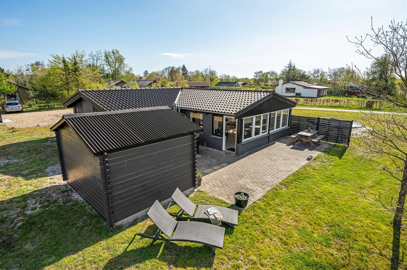 Modernes Ferienhaus nahe dem Strand Skaven mit großer Terrasse und Naturgrundstück.
