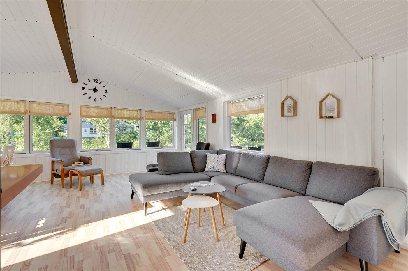 Die Ferienunterkunft liegt auf einem 1200 m² großen Naturgrundstück. Die Entfernung zum Meer beträgt 13000 m. Die Entfernung zum Fjord beträgt 350 m. Die nächste Einkaufsmöglichkeit liegt 650 m entfernt. Es steht ein offenes Terrassenareal zur Verfügung. Trampolin. Die Entfernung zu einem Spielplatz beträgt 500 m. Außendusche. Parkplatz auf dem Grundstück.