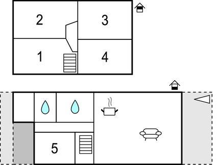Badezimmer (nr. 1) - WC. Warmes und kaltes Wasser. Dusche