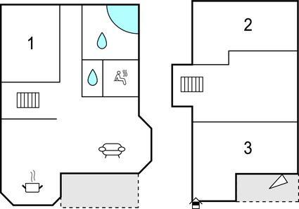 Schlafzimmer (nr. 2) - 1 Schlafmöglichkeit. (Einzelbett(en)). 2 Schlafmöglichkeiten. (Doppelbett(en)).