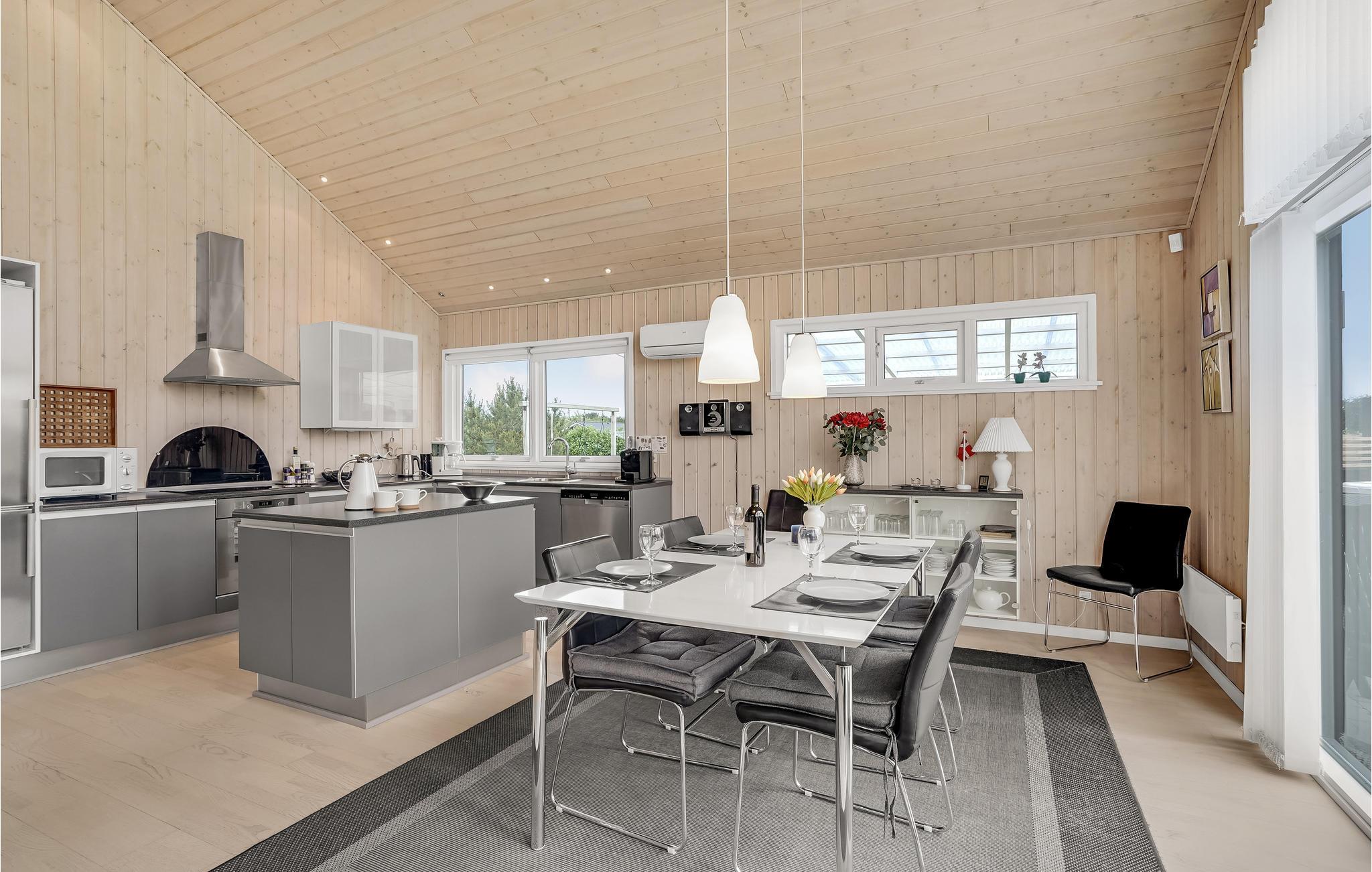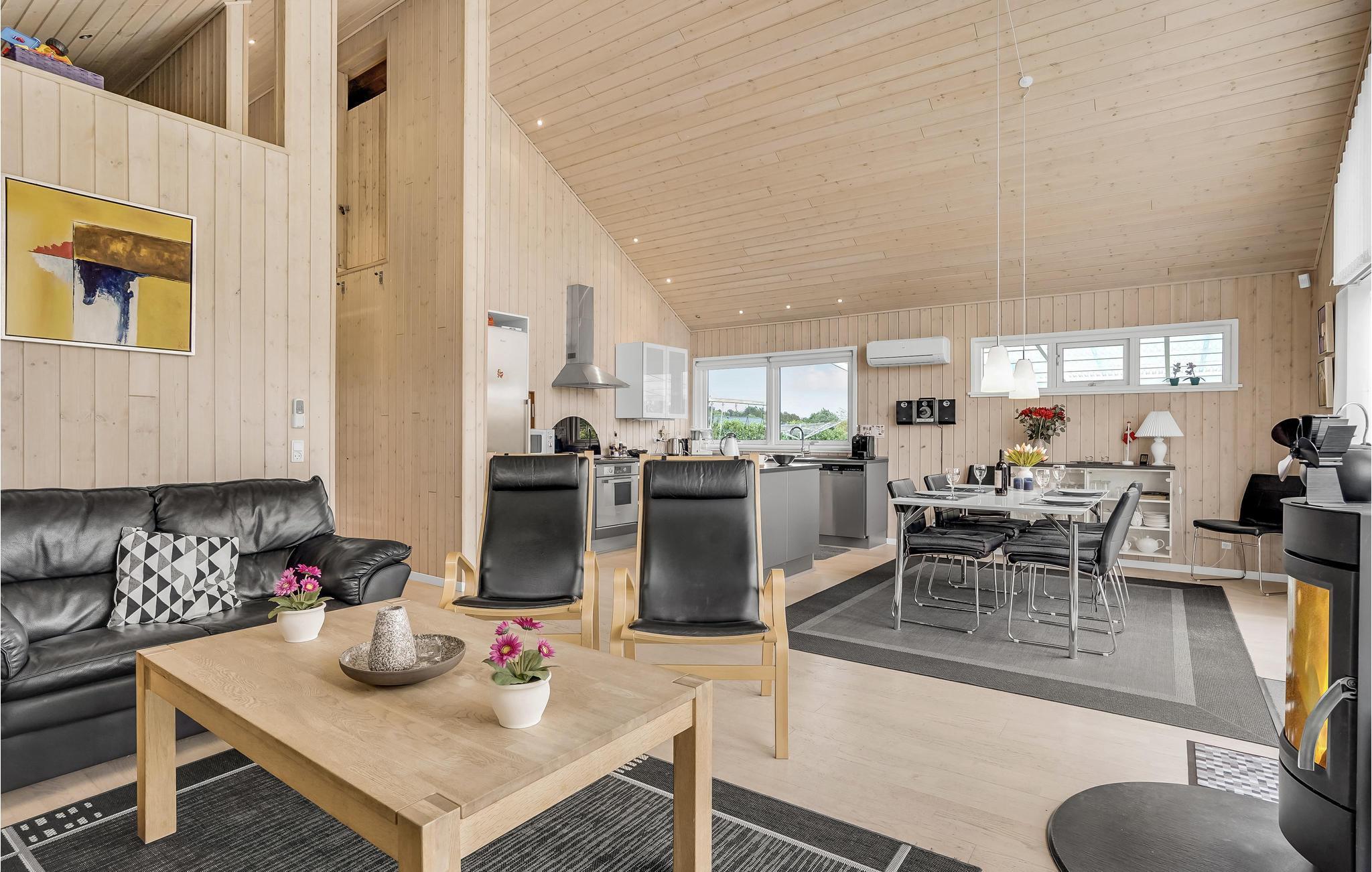 In fußläufiger Entfernung zum Strand erwartet Sie dieses komfortable und geräumige Ferienhaus. Genießen Sie schon beim Aufwachen den schönen Blick ins Freie. Entspannen Sie in Sauna und Whirlpool, machen Sie es sich nach erlebnisreichen Tagen im Wohnbereich bequem, wo Sie am Kaminofen entspannen können, streamen Sie Ihren Lieblingsfilm oder plaudern Sie gemütlich.