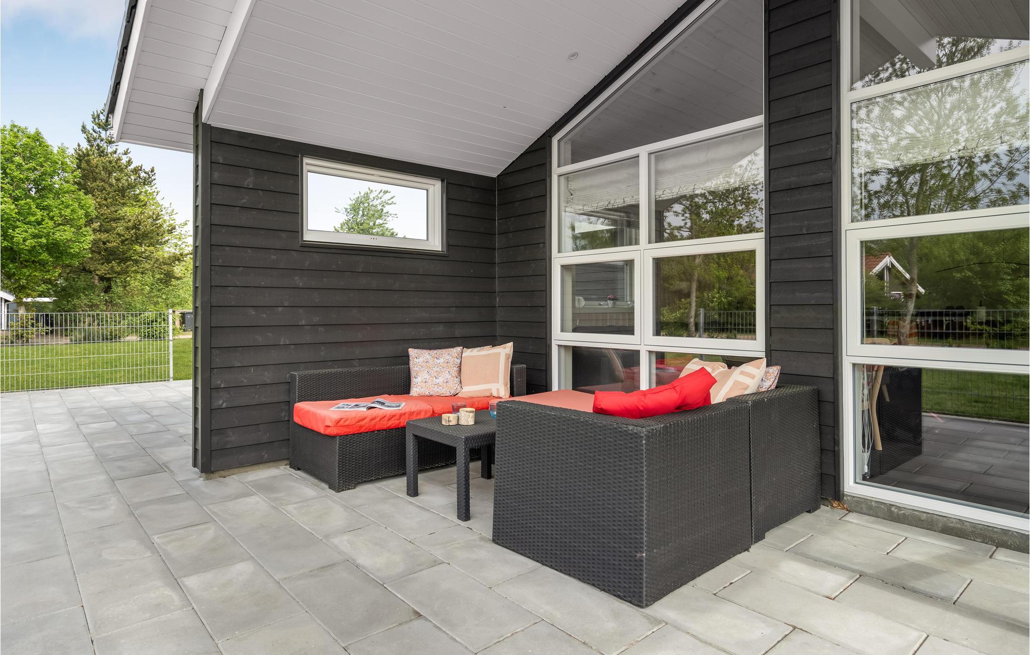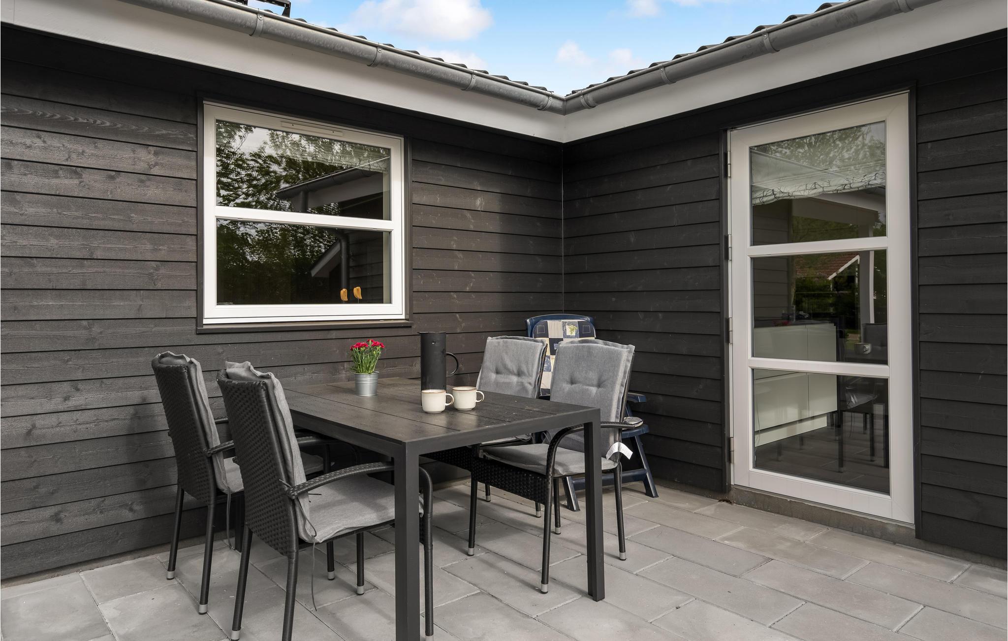 Auf der Terrasse genießen Sie geschützt vor dem Wind die Sonne. Egal, ob Sie hier draußen gemeinsam essen, in Ruhe ein Buch lesen oder einfach die Beine hochlegen und sich ausruhen, hier ist die Zeit im Freien immer ein Genuss.