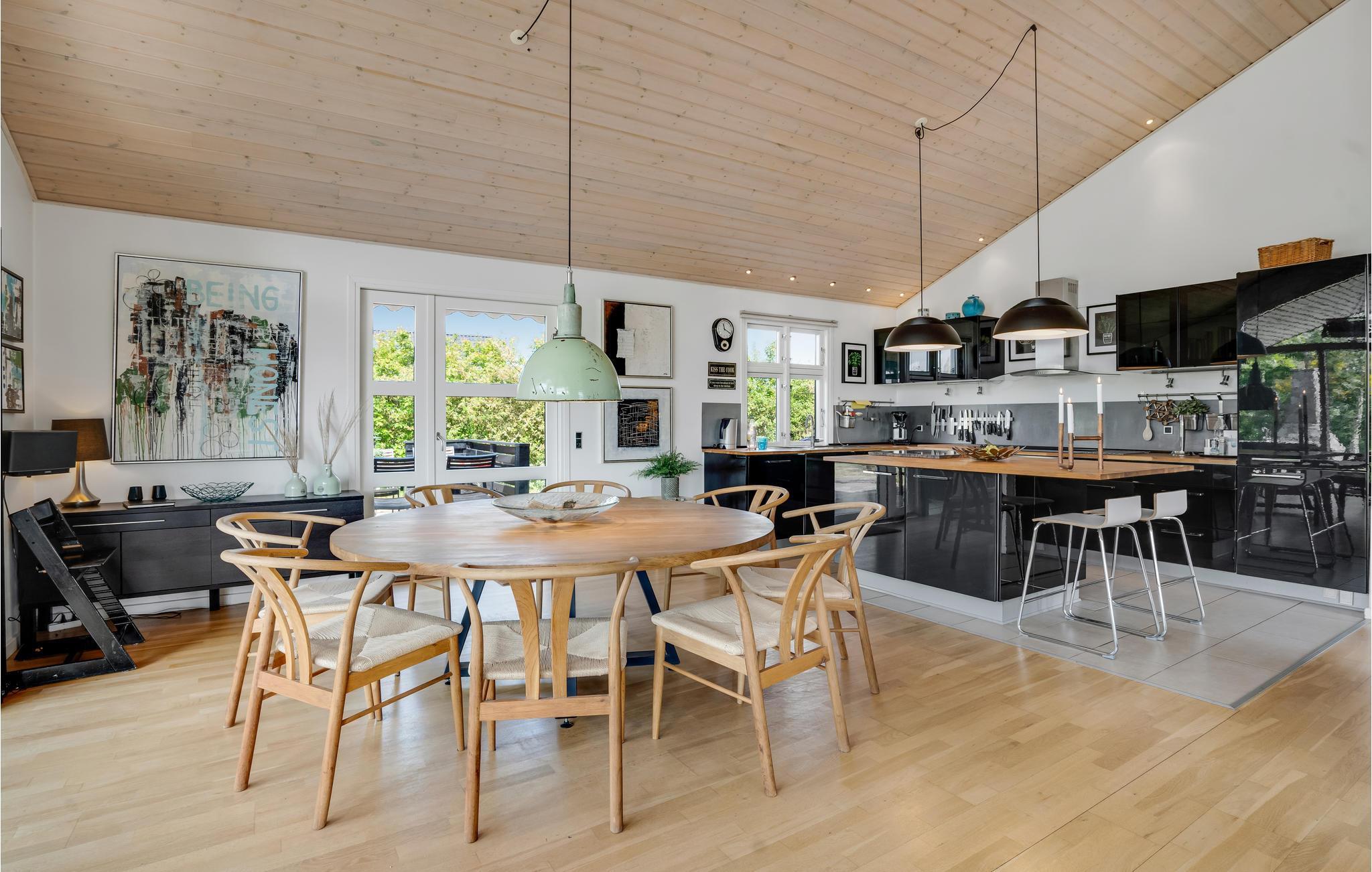 Erleben Sie einen erholsamen Urlaub in dem hellen und einladenden Haus, das seine Gäste nur einen kurzen Spaziergang vom Fjord begrüßt. Entspannen Sie nach einem Strandspaziergang ausgiebig im Whirlpool. Die großzügige Küche lädt zum gemeinsamen Kochen ein, später können Sie es sich im ansprechenden Wohnbereich gemütlich machen, feuern Sie im Kaminofen an und plaudern Sie noch lange in der bequemen Sitzgruppe.