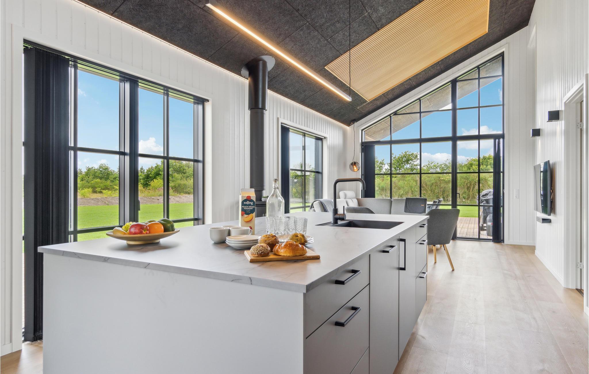 Das einladende Haus, das Sie in fußläufiger Entfernung zum Ringkøbing Fjord auf einem großzügigen Grundstück empfängt, bietet Ihnen die besten Bedingungen für eine erholsame Auszeit, gerne auch mit Kindern. Mit dem schönen Tageslichteinfall durch große Sprossenfenster und der modernen, geschmackvollen Einrichtung bietet es den idealen Rahm zum Erholen. Unternehmungen in herrlicher Natur oder entspannte Tage im Ferienhaus, hier haben Sie alle Möglichkeiten. Verbringen Sie gemütliche Abende nach erlebnisreichen Tagen, entspannen Sie nach einem langen Spaziergang in Sauna und Whirlpool, der Kaminofen schafft eine besonders behagliche Atmosphäre.