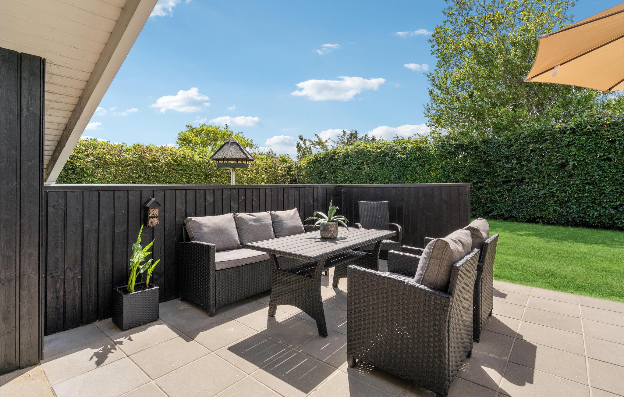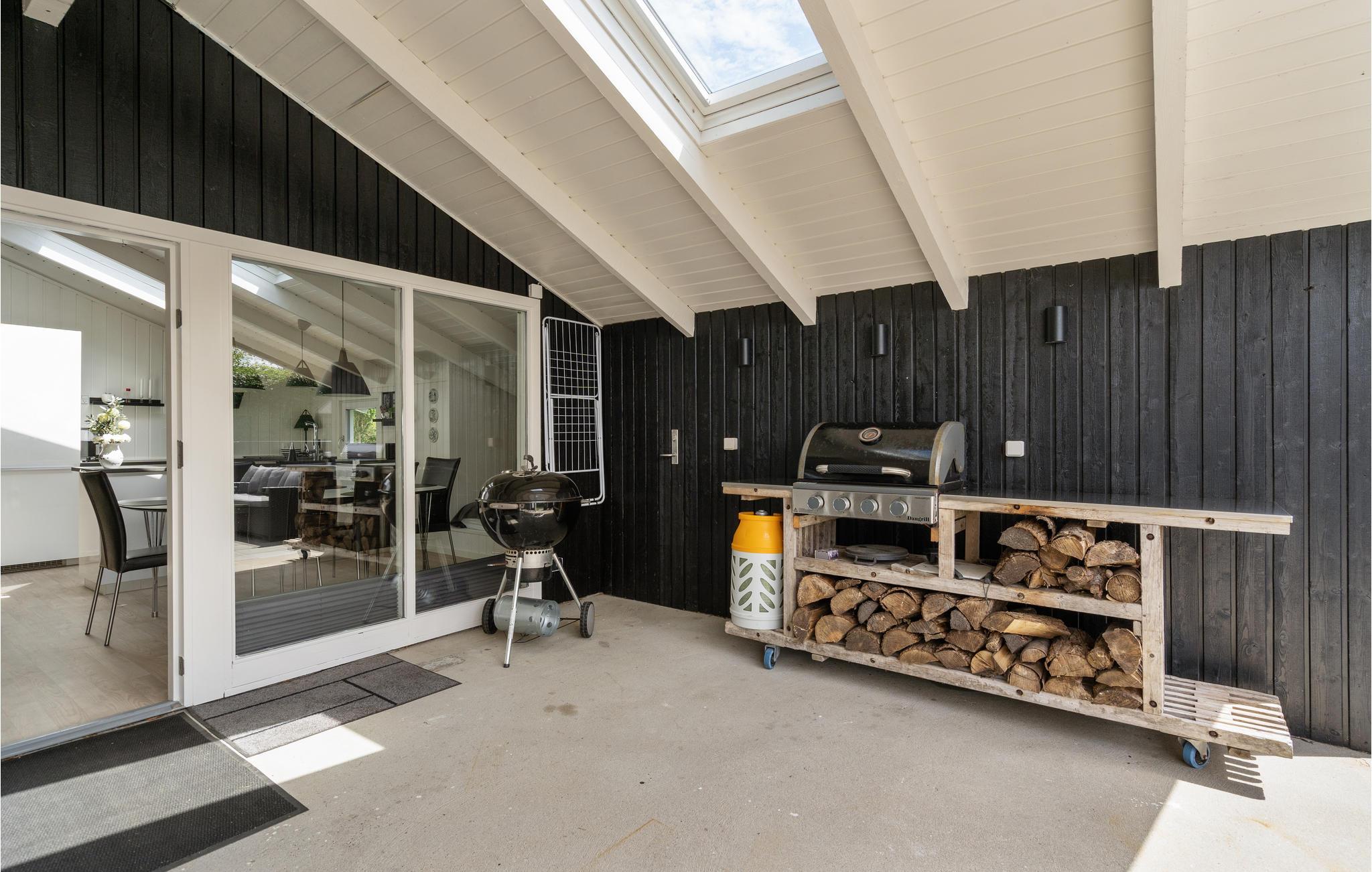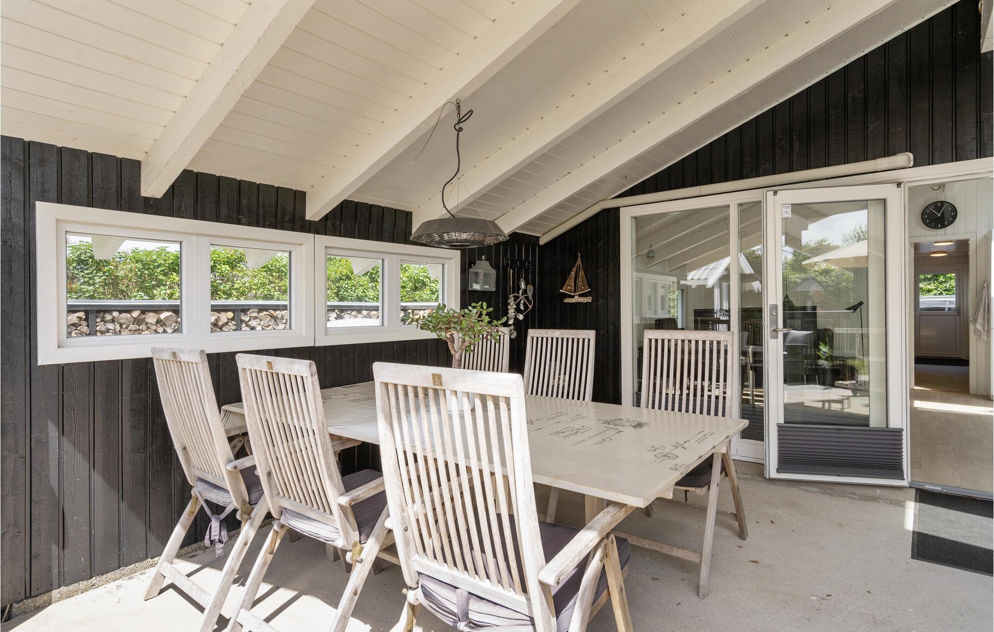Modernes Ferienhaus mit Kamin und finnischem Holzbad nahe kinderfreundlichem Strand in Skaven Strand, Dänemark.