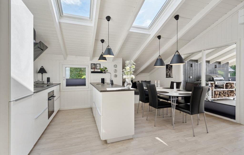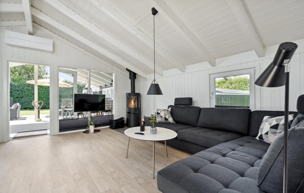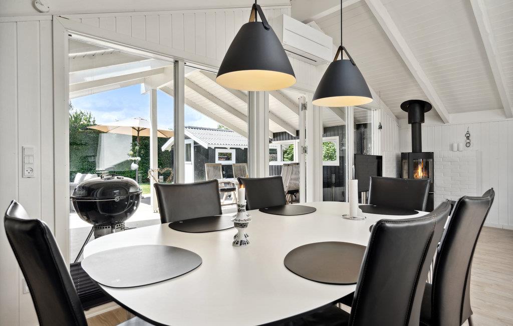 In idealer Lage nahe Fjord und Meer erwartet dieses Ferienhaus seine Gäste. Die hellen Räume sind modern und wohnlich möbliert und bilden den idealen Rahmen für eine wunderbare Auszeit, in der Sie Strandvergnügen, Naturerlebnisse und spannende Ausflüge ideal kombinieren können. Speisen Sie mit schönem Blick in den Garten und machen Sie es sich abends auf dem großzügigen Ecksofa gemütlich, wo Sie beim leisen Knistern der Flammen im Kaminofen noch lange zusammensitzen können.