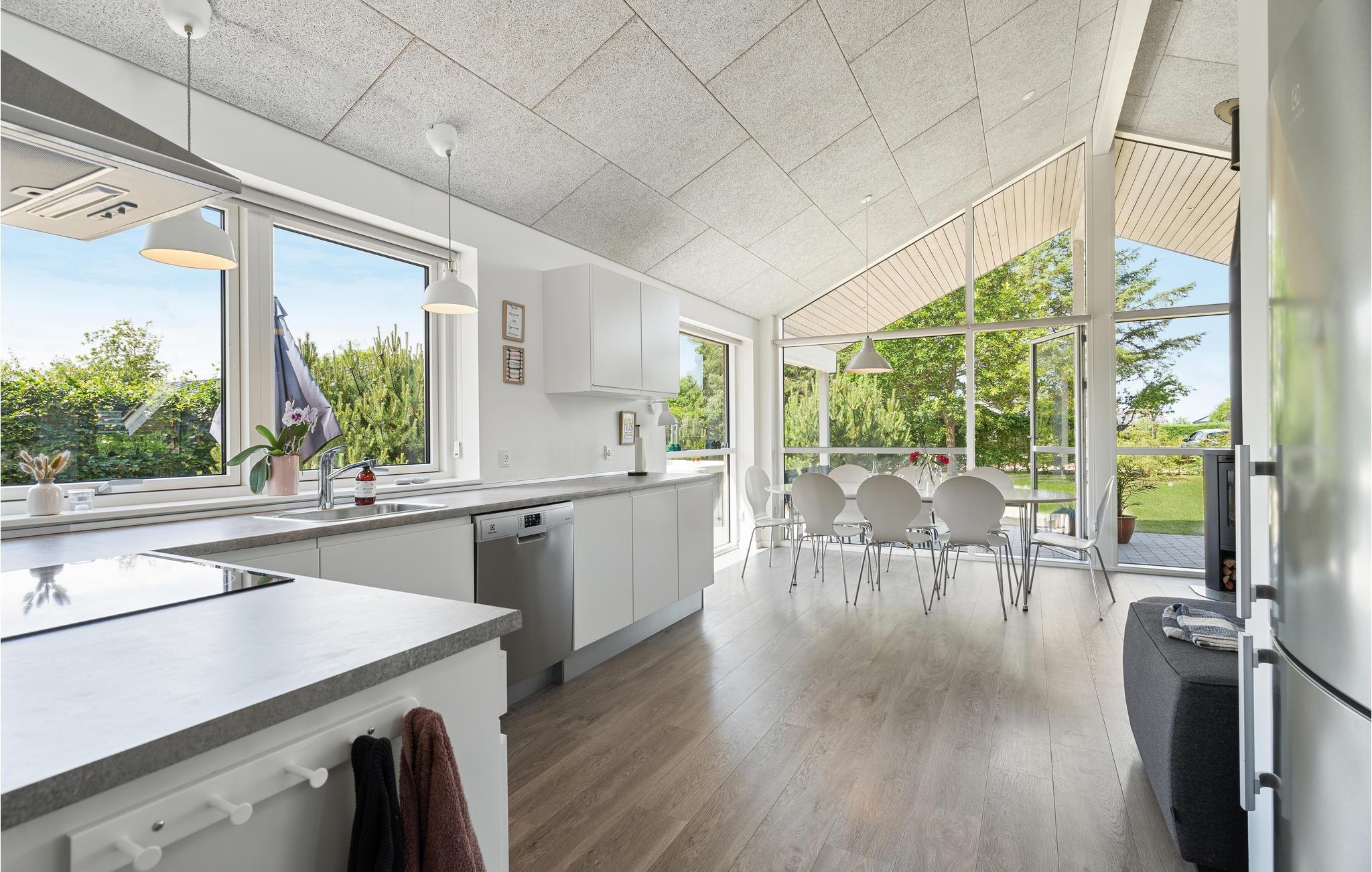 Das einladende Haus bietet seinen Gästen jeden Komfort für einen gelungenen Urlaub. Die hellen Räume sind modern möbliert und bilden den idealen Rahmen für eine wunderbare Auszeit, in der Sie den Alltag weit hinter sich lassen können. Machen Sie es sich hier zusammen gemütlich, genießen Sie den schönen Blick in den Garten durch große Fenster beim gemeinsamen Essen Entspannen auf dem Sofa und genießen Sie die Urlaubsabende am behaglich knisternden Kaminofen.