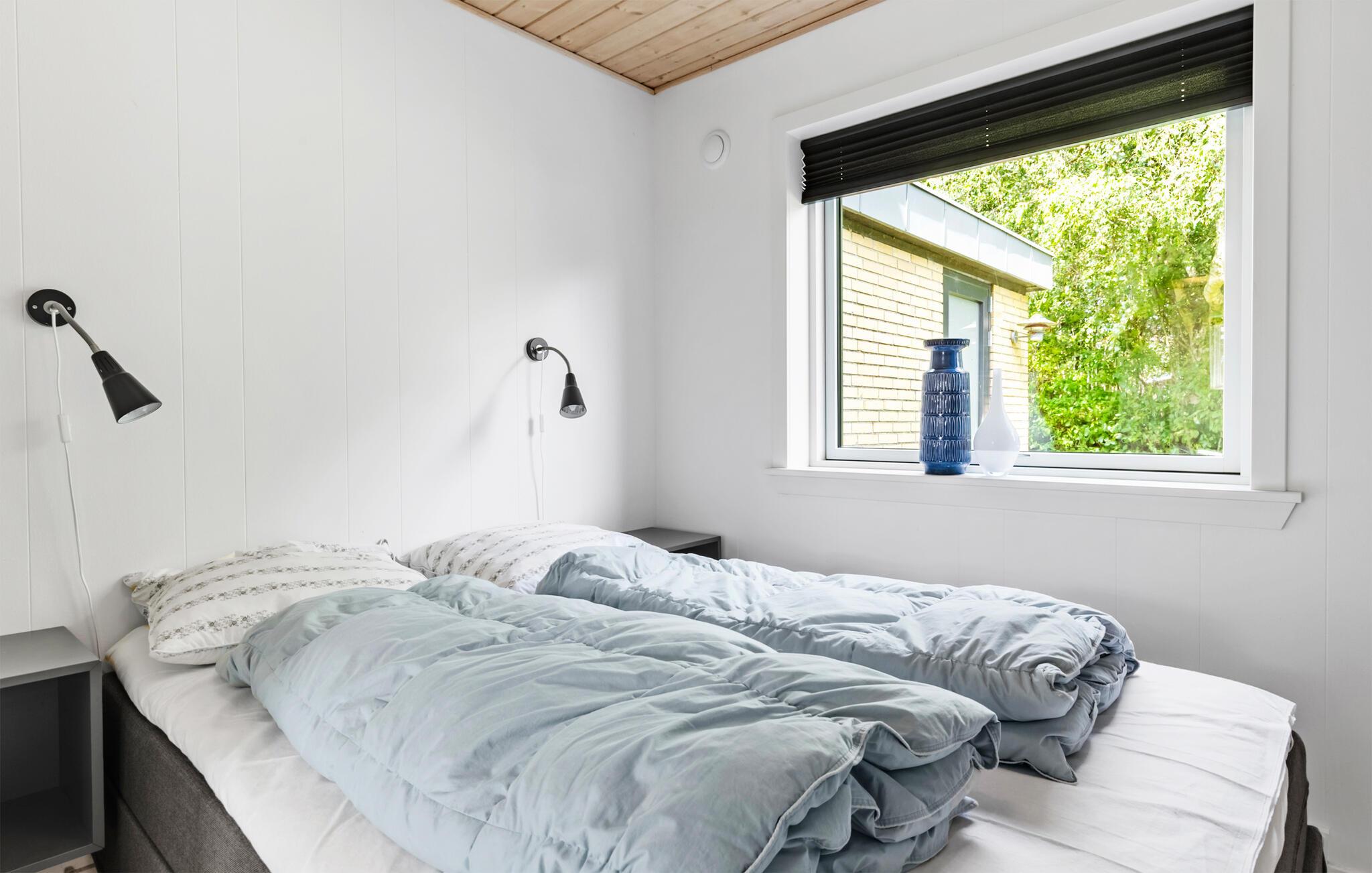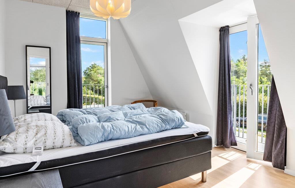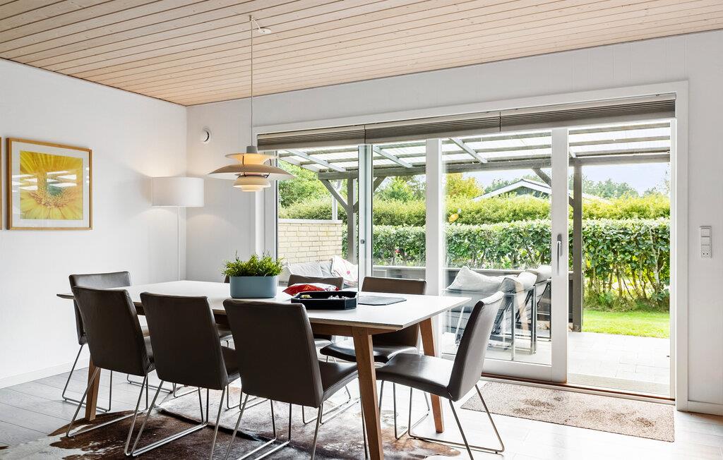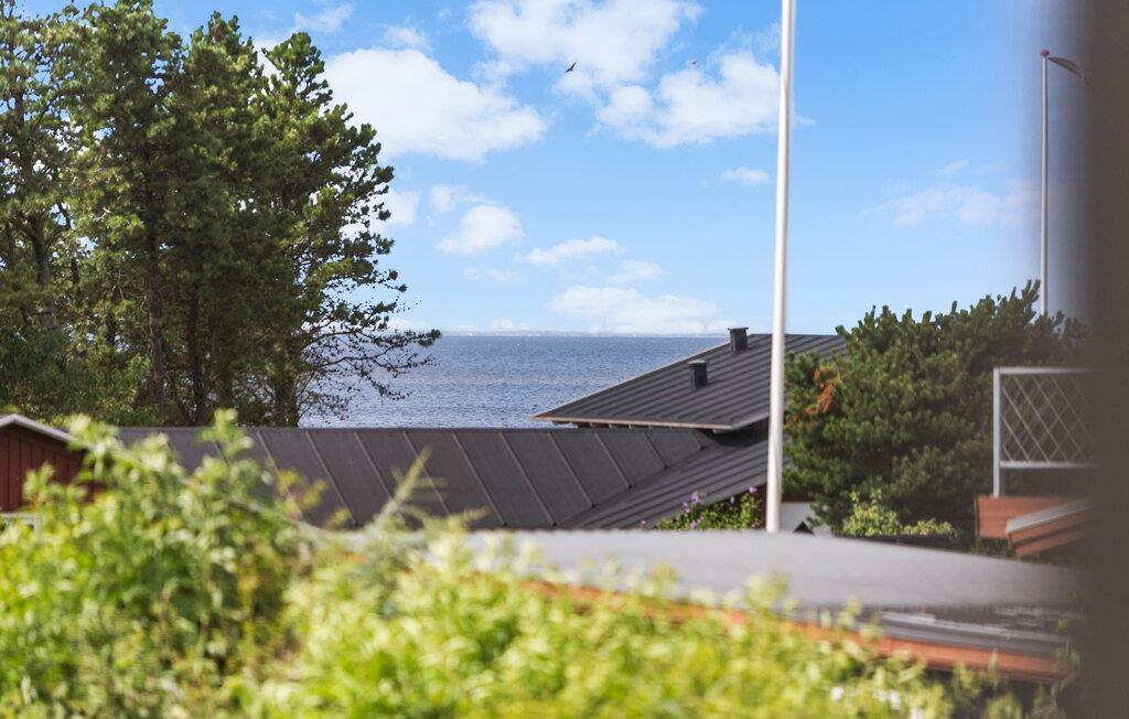Freuen Sie sich auf Ihren nächsten Urlaub in diesem Ferienhaus, das nur wenige Gehminuten vom Strand entfernt liegt. Im Obergeschoss erwartet Sie ein großzügiges Wohnzimmer mit Panoramafenstern, die den Blick auf die Umgebung freigeben. Machen Sie es sich auf der Couch gemütlich oder genießen Sie die Aussicht bis zum Meer von der angeschlossenen Dachterrasse aus. Im Erdgeschoss lädt ein weiterer Wohnbereich mit Kaminofen zu behaglichen Stunden ein. In der praktisch eingerichteten Küche können Sie bequem für Familie und Freunde kochen.