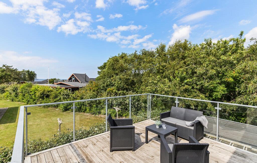 Modernes Ferienhaus nahe Skaven Strand mit Meerblick, Kaminofen und großzügiger Dachterrasse für unvergessliche Urlaubsmomente.