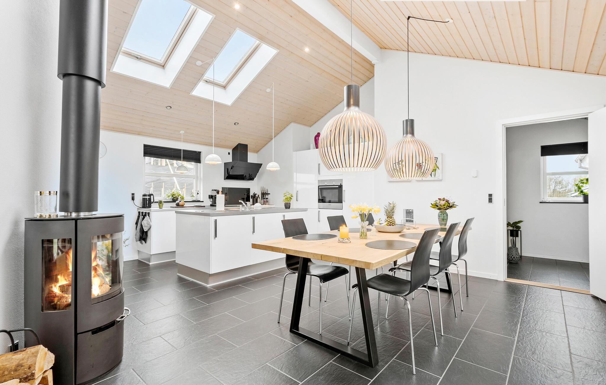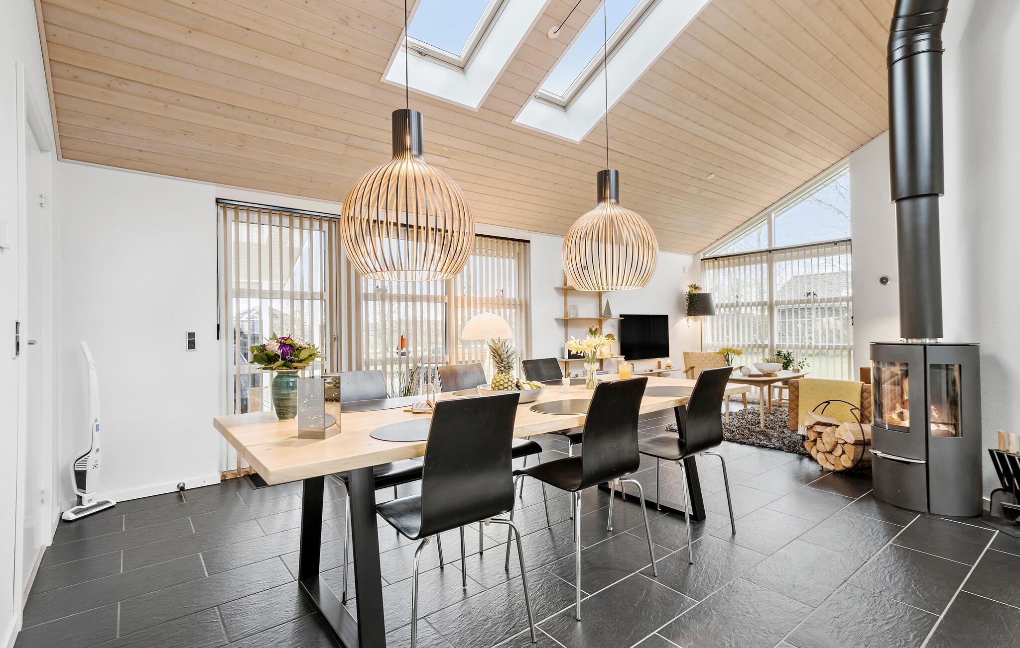 Genießen Sie Ihre Urlaubstage in diesem sehr gut gepflegten Ferienhaus, das Sie mit hohen Dachgiebeln, lichtdurchfluteten Räumen und hochwertige Einrichtung und Dekoration empfängt. Genießen Sie das wohnliche Ambiente mit Holzofen und großer Küche, die zum Kochen einlädt. Auch Entspannung wird großgeschrieben, denn Saunieren und Baden in der Whirlpool-Badewanne können zu Ihrem Ferienalltag gehören.