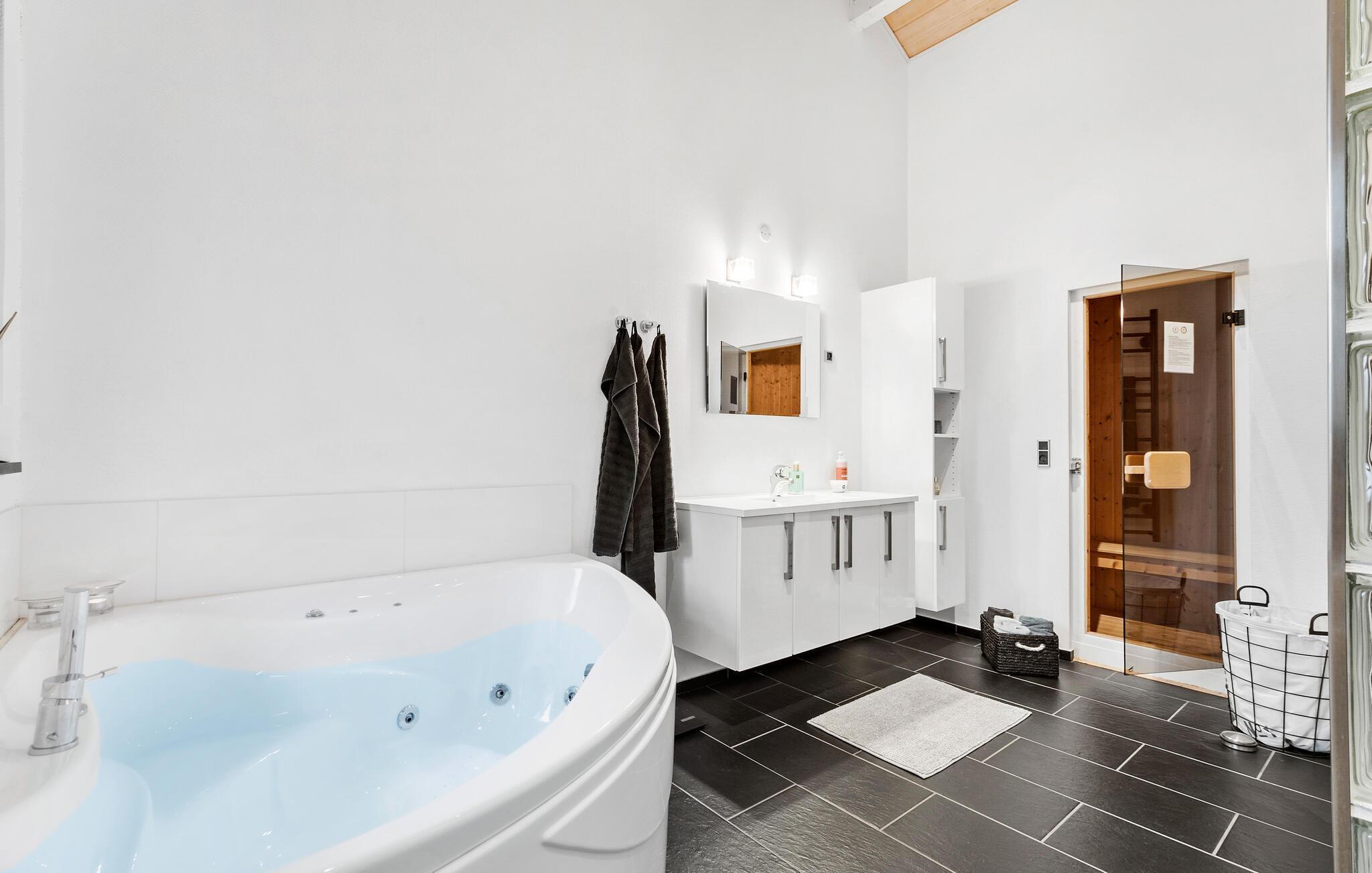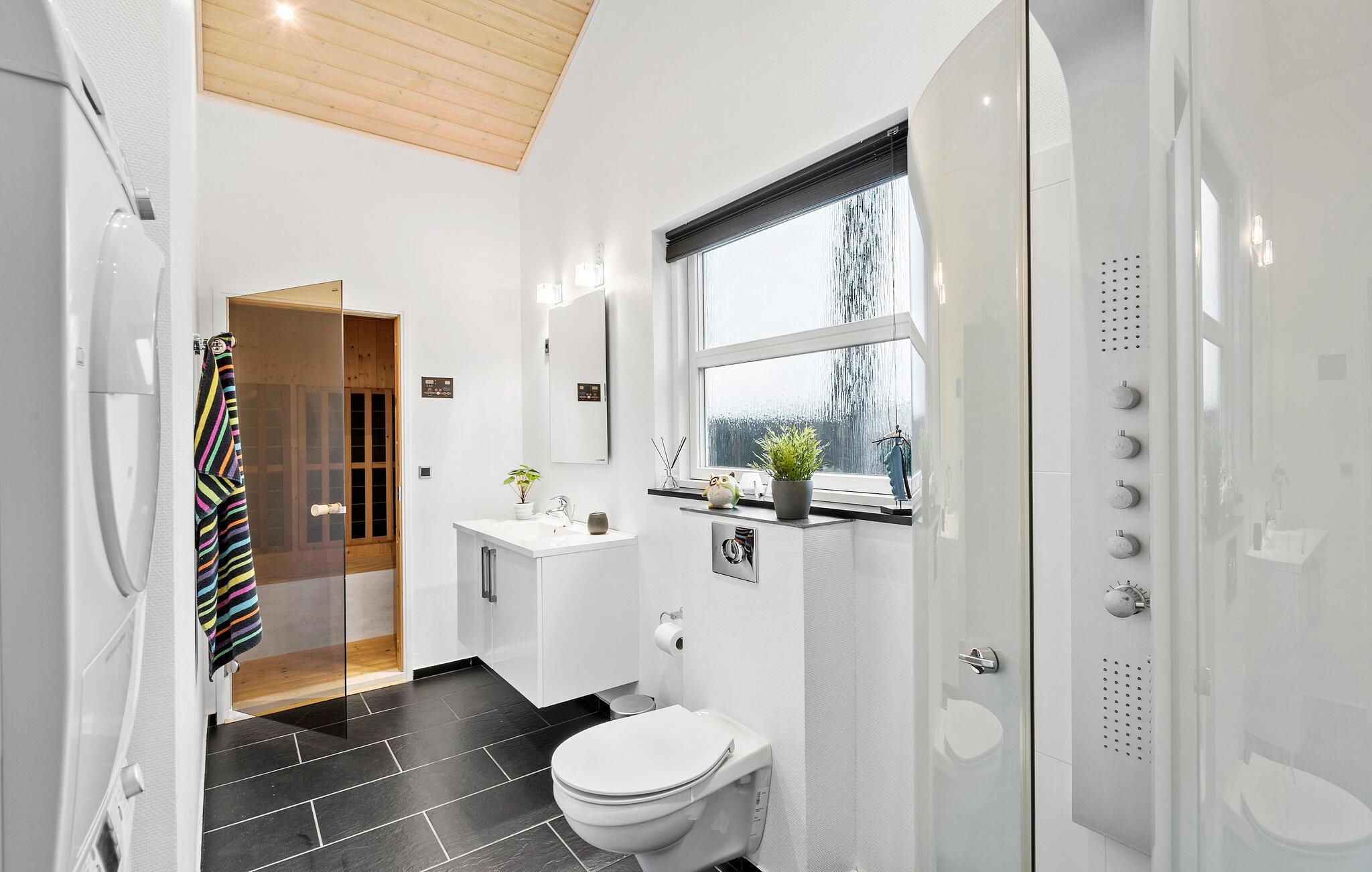 Erleben Sie Erholung pur in diesem modernen Ferienhaus mit Sauna und Whirlpool nahe dem kinderfreundlichen Skaven Strand.