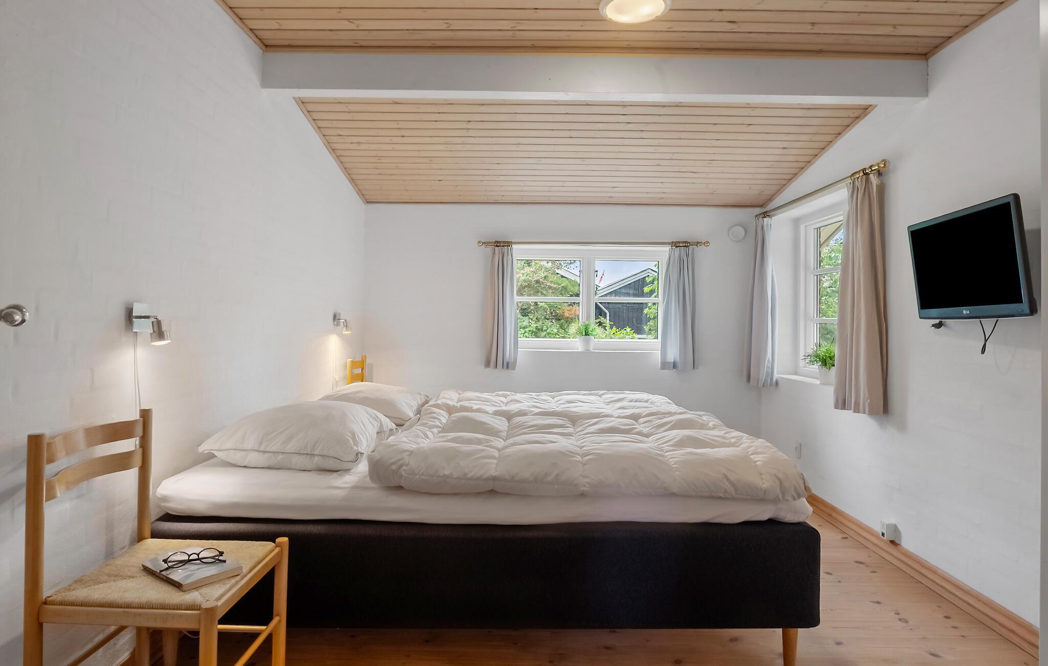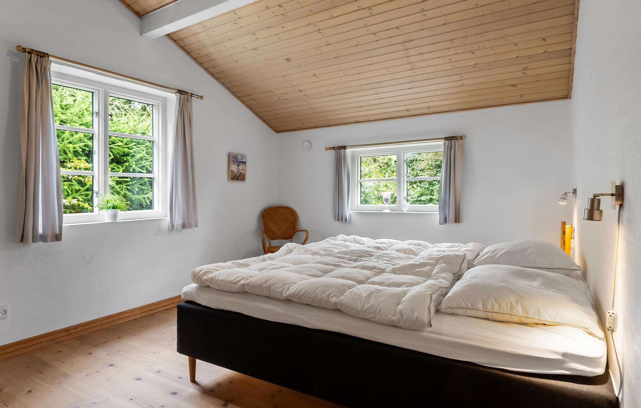 Nutzen Sie die Terrasse für Mahlzeiten im Freien oder zum Sonnenbaden mit Blick ins Grüne und auf den Ringkøbing Fjord. Die große Rasenfläche eignet sich ideal zum Spielen oder Entspannen im Liegestuhl. Ziehen Sie sich zurück und genießen Sie die Ruhe, während ringsum nur das Rauschen der Bäume zu hören ist.