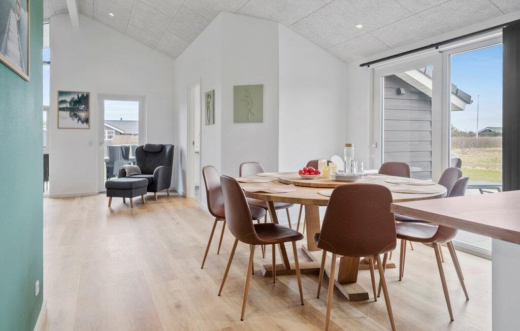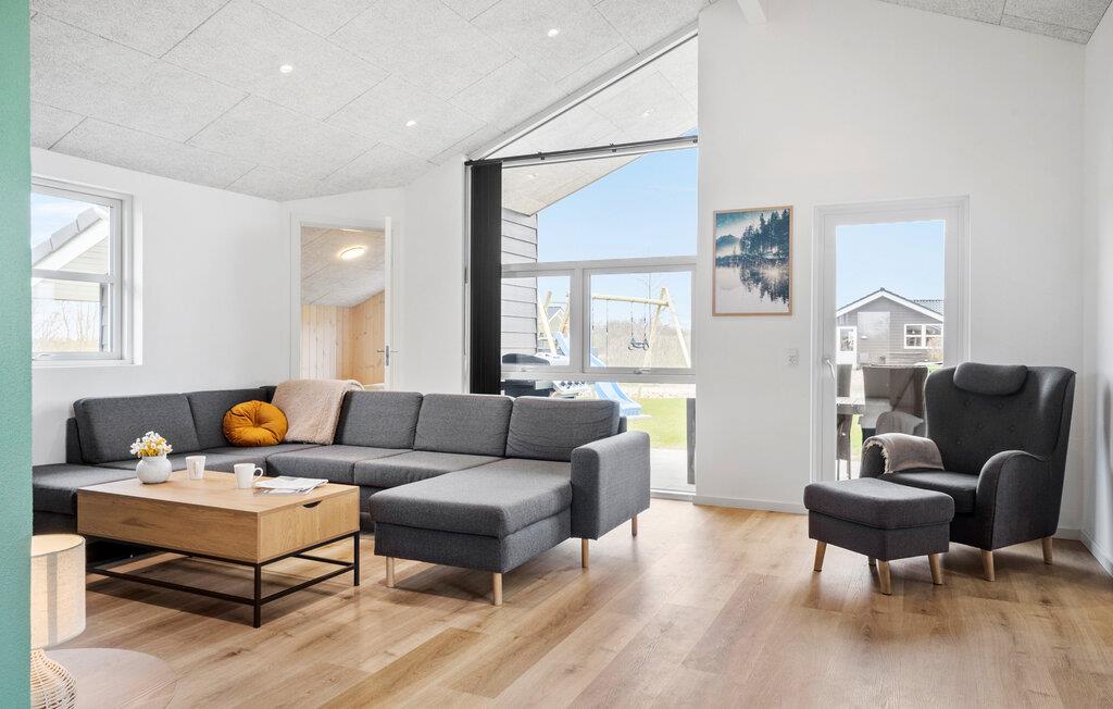 In einer ruhigen und schönen Gegend bei Skaven Strand empfängt Sie auf einem großen Grundstück dieses stilvoll eingerichtet Ferienhaus, das perfekt für eine Familie mit Hunden ist. Entspannen Sie im lichtdurchfluteten Ferienhaus und nutzen den geräumigen Wohnraum als zentralen Treffpunkt für gemeinsame Kochevents, Entspannung auf dem Sofa oder ausgiebigen Spielstunden am Esstisch. Genießen Sie die gemütliche Wohnatmosphäre und treten hinaus auf die das Haus umgebene Terrasse.
