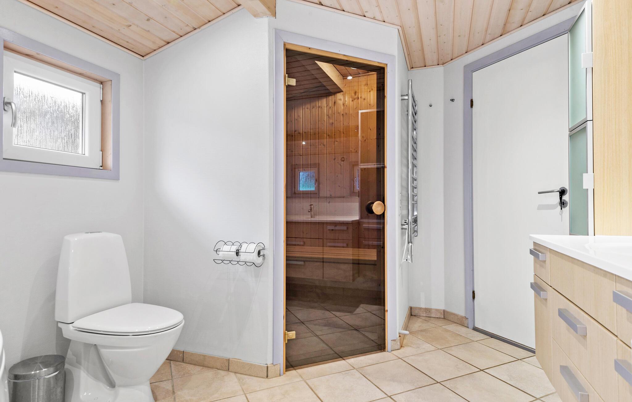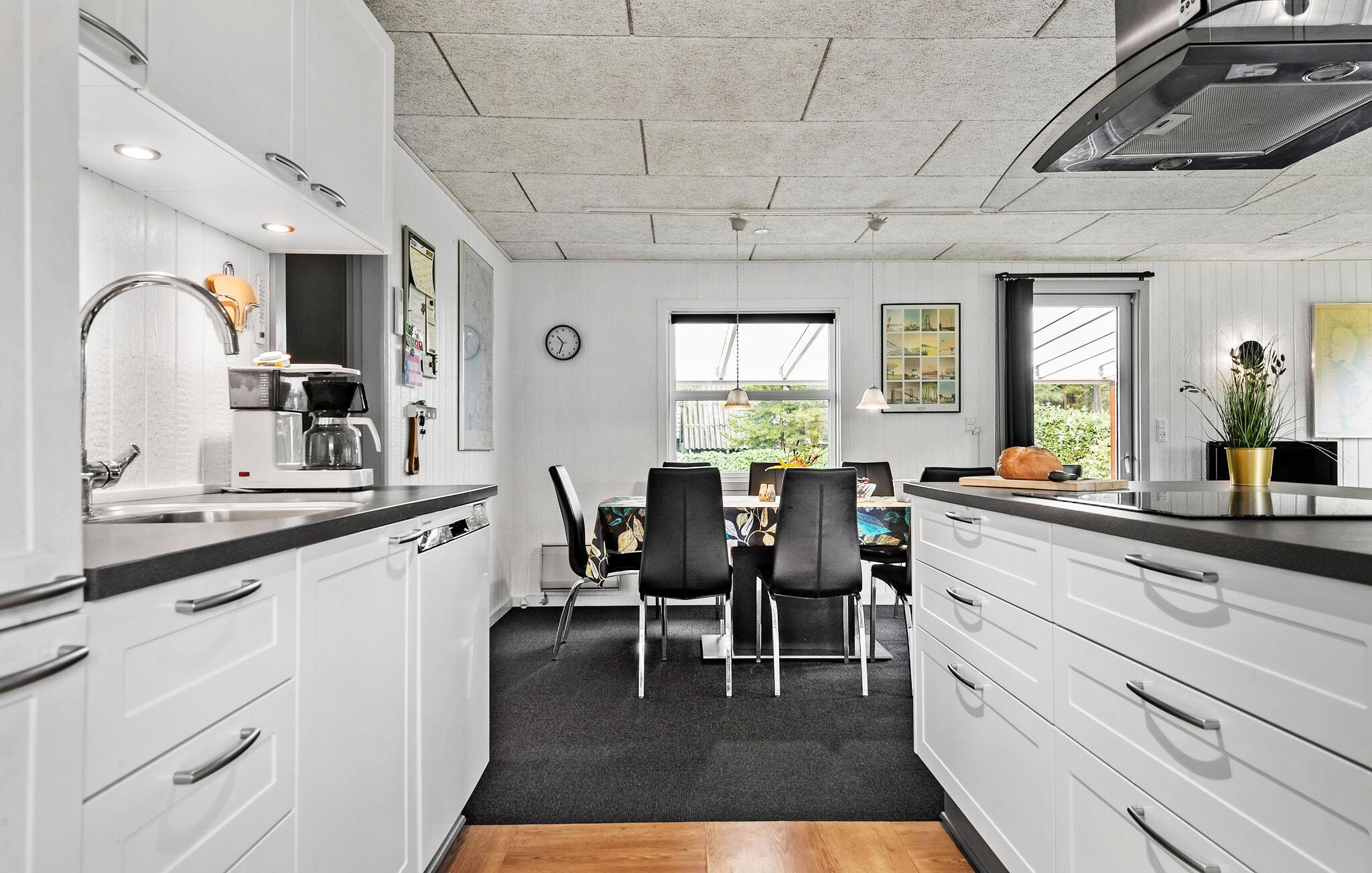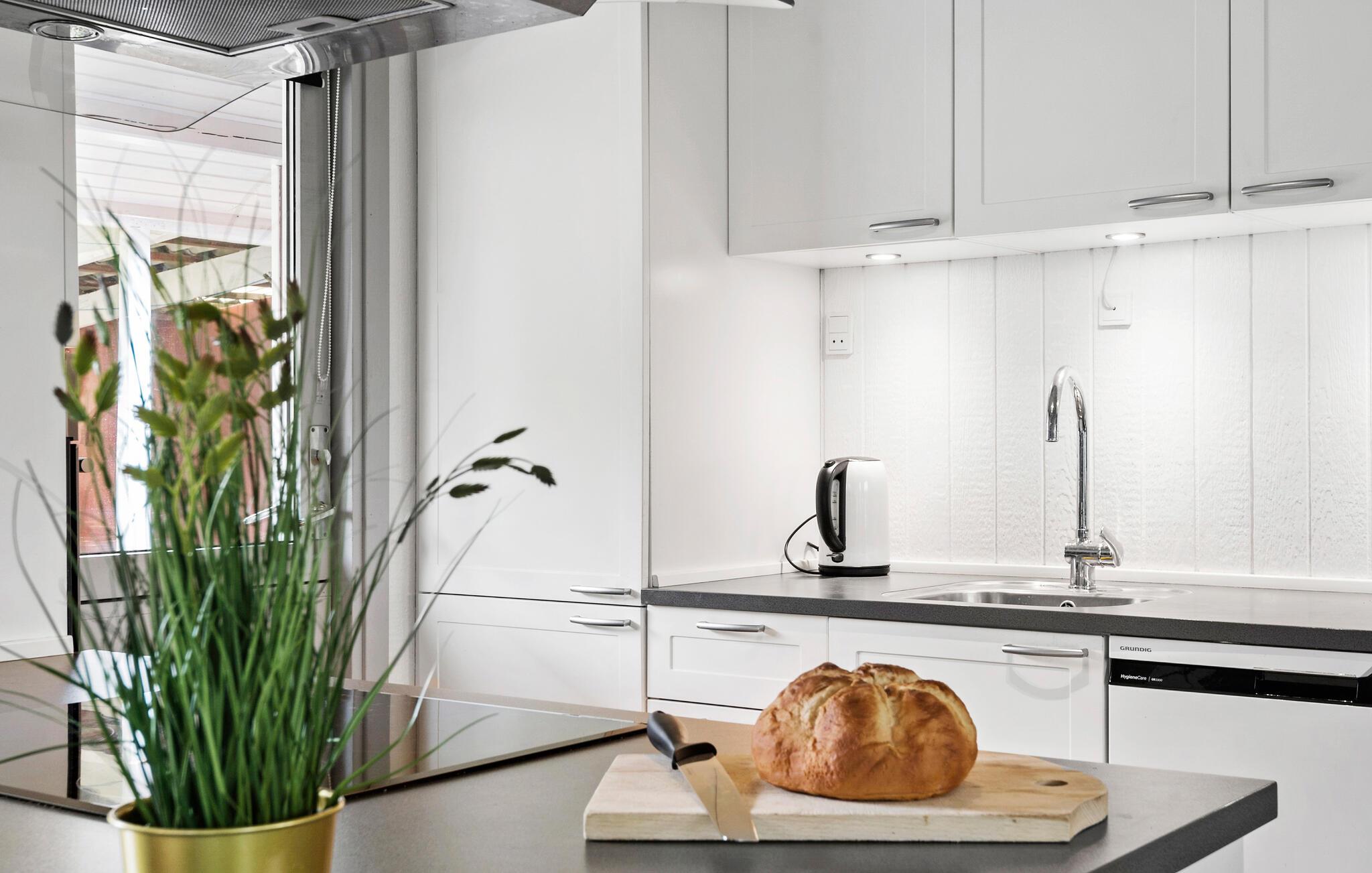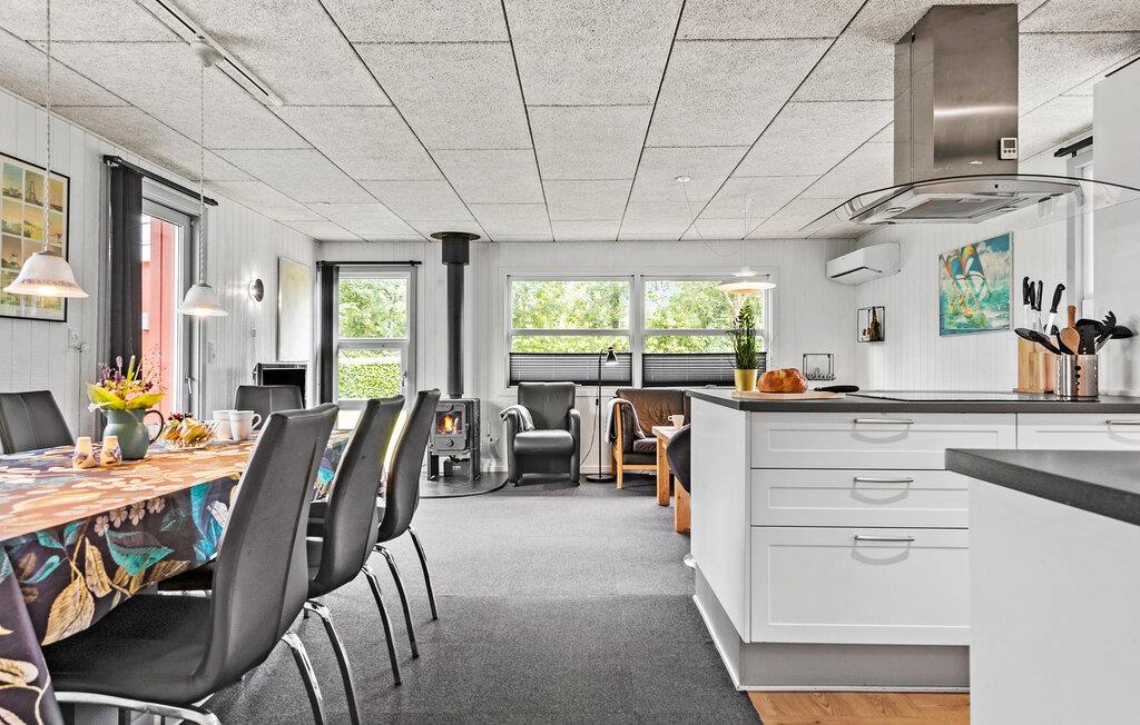 Freuen Sie sich auf Ihren Urlaub in diesem Ferienhaus mit vielen schönen Annehmlichkeiten. Die moderne, offene Küche lädt dazu ein, köstliche Mahlzeiten zuzubereiten. Kochen Sie gemeinsam mit der Familie oder Ihren Freunden und genießen Sie gesellige Abende. Der kombinierte Wohn- und Essbereich bietet einen Esstisch mit Platz für alle und eine komfortable Sofaecke, wo Sie sich entspannen und die freie Urlaubszeit in vollen Zügen genießen können. Nutzen Sie auch die Sauna, um Ihre Tage entspannt ausklingen zu lassen.