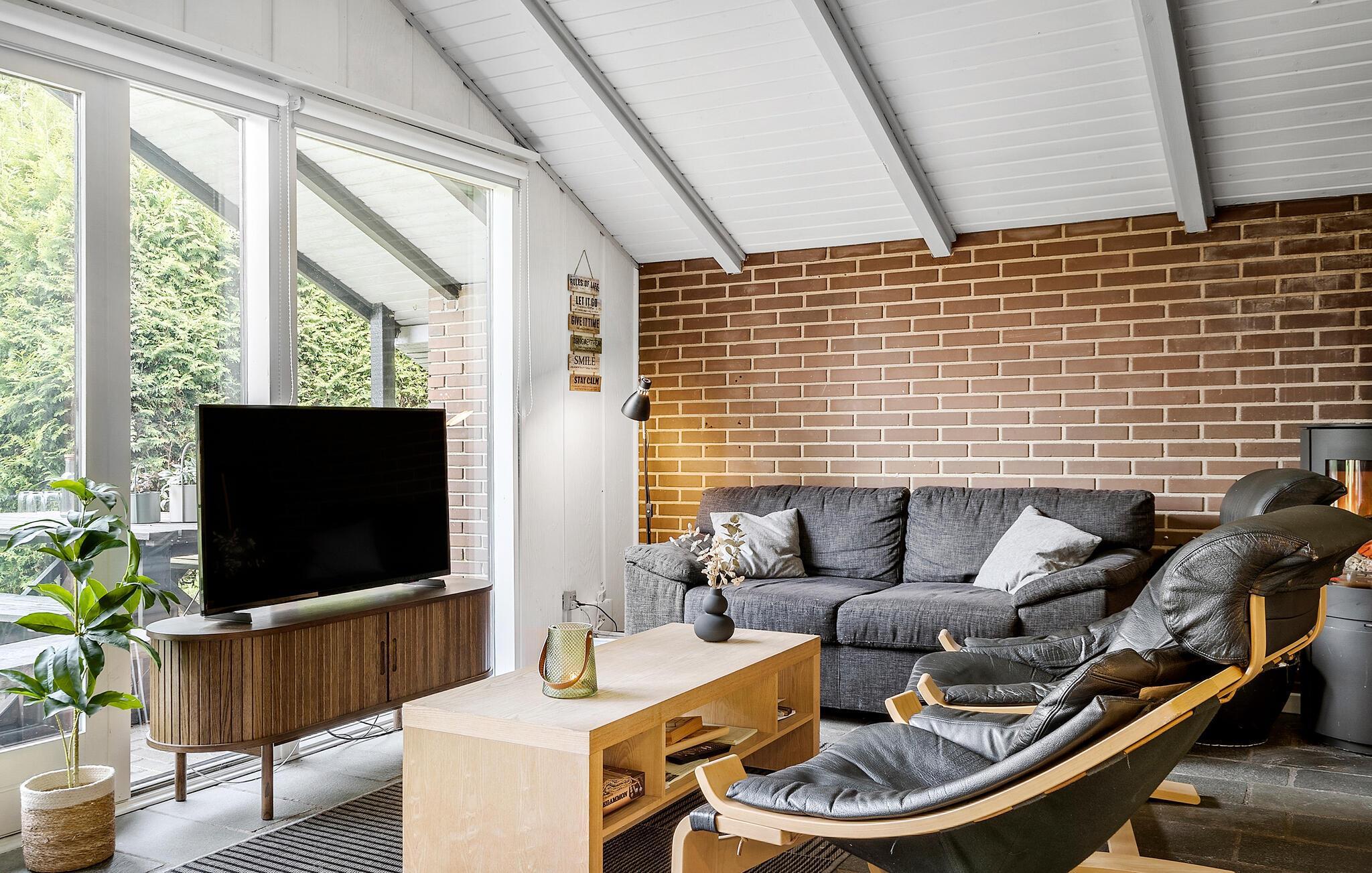 Genießen Sie eine entspannte Auszeit in diesem gemütlich eingerichteten Ferienhaus, das Ihnen beste Voraussetzungen für gesellige Stunden bietet. Kochen Sie gemeinsam in der offen gestalteten Küche, die fließend in den Essbereich übergeht. Der große Esstisch eignet sich perfekt für lange Mahlzeiten mit der Familie oder mit Freunden. Durch die bodentiefen Fenster fällt viel Licht ins Innere und eröffnet den Blick auf das grüne Grundstück. Lassen Sie den Abend in der gemütlichen Sofaecke ausklingen.