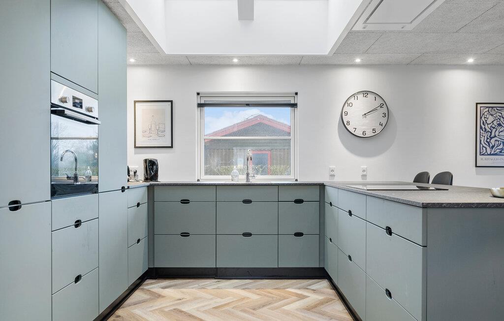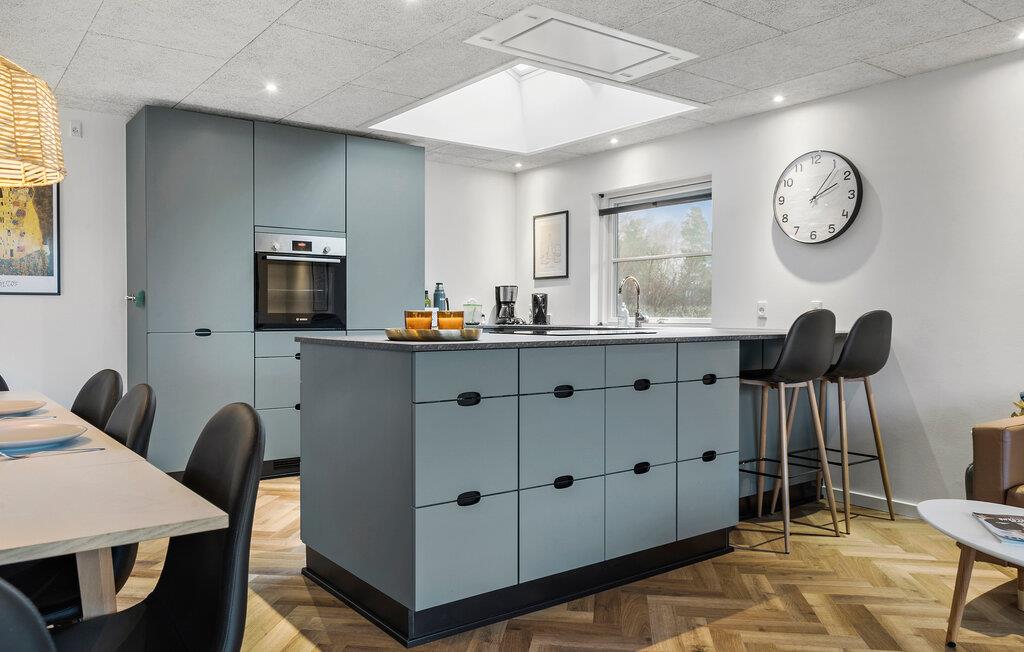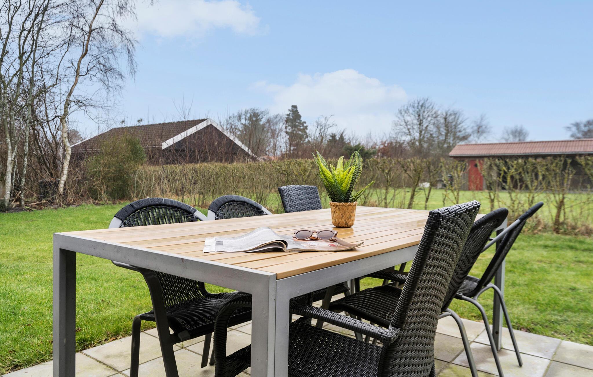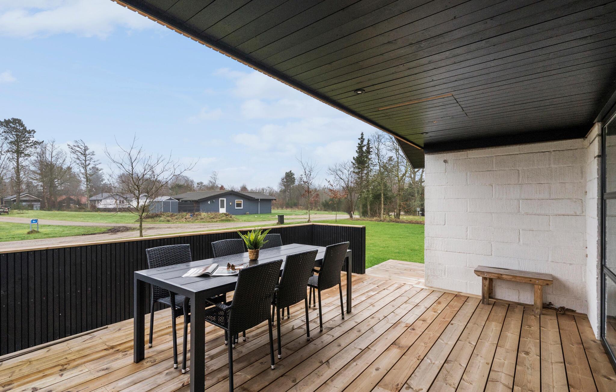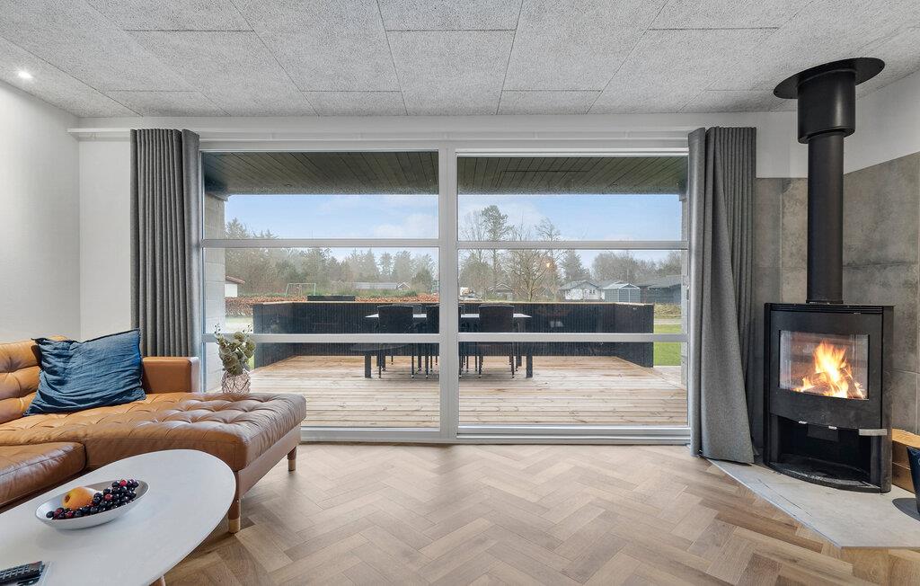 Charmantes Ferienhaus in Skaven Strand mit gemütlichem Kamin und mehreren Terrassen zum Entspannen.