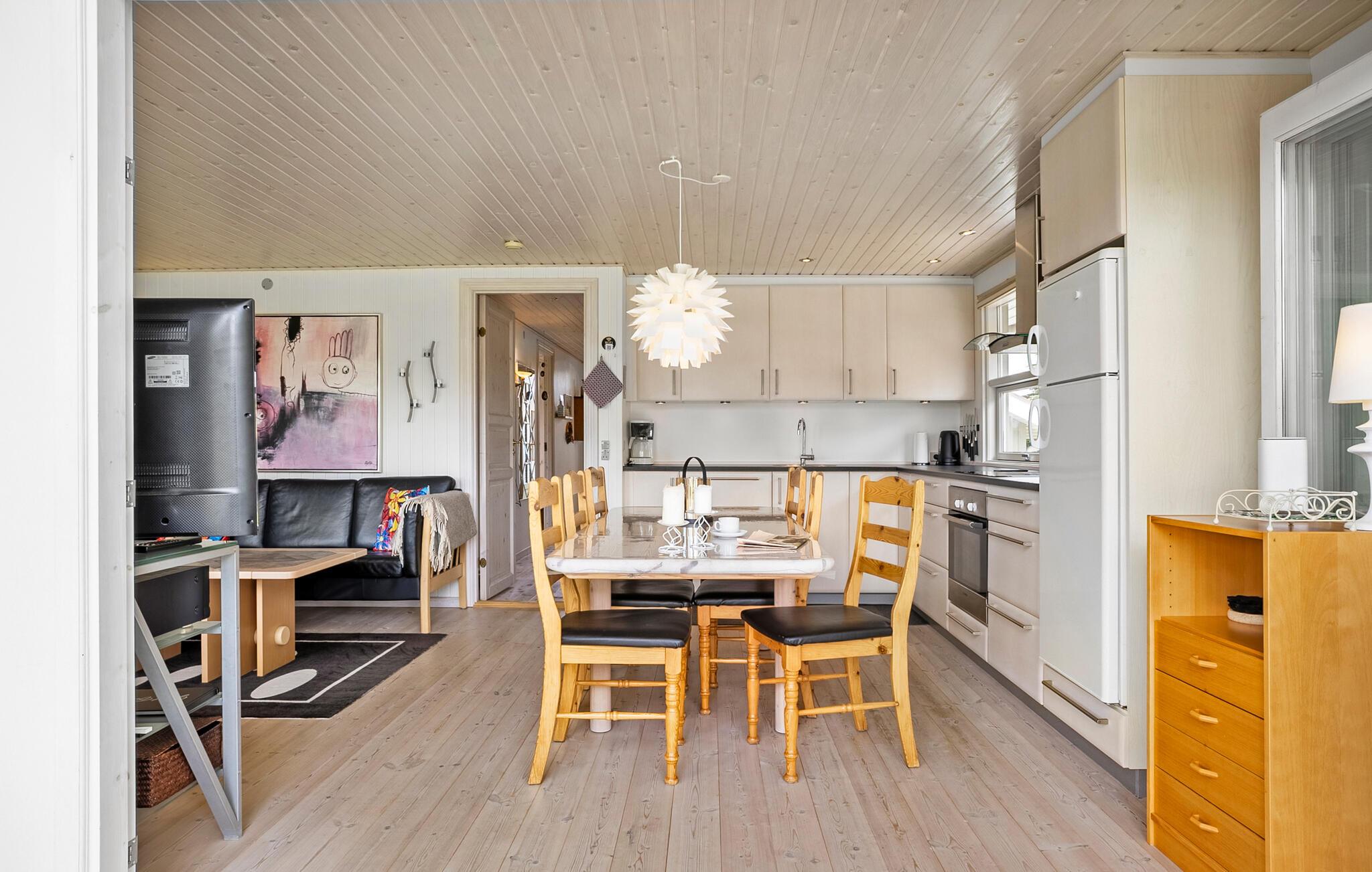 Willkommen in diesem hellen und einladenden Ferienhaus, in dem Sie sich vom Alltag erholen und ganz Ihrer Familie widmen können. Bereiten Sie Ihre Lieblingsmahlzeiten zu und entfachen Sie den Kaminofen. Gönnen Sie sich wohlige Momente in der Sauna, veranstalten Sie einen fröhlichen Spieleabend, lesen Sie Ihren Kindern ein Buch vor oder plaudern Sie auf dem gemütlichen Sofa bis in die Nacht hinein.