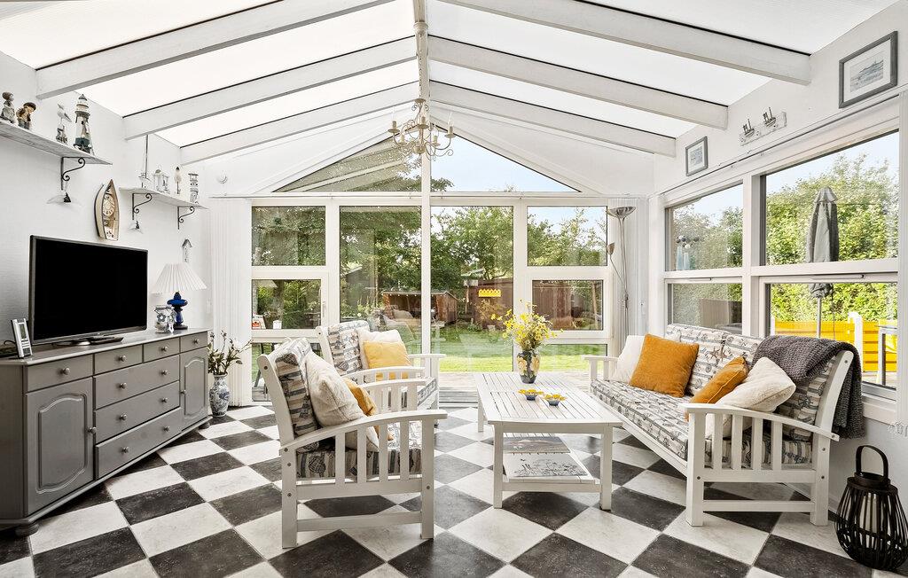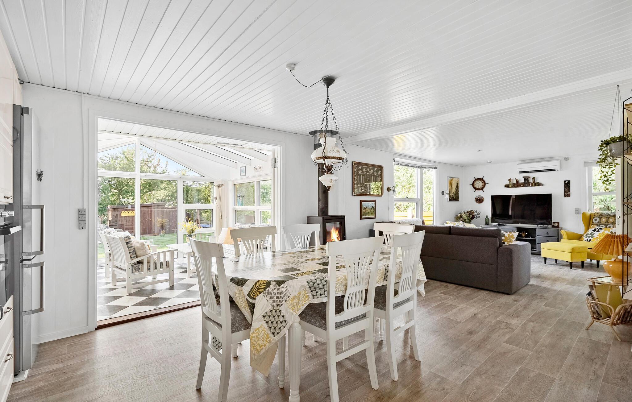 Freuen Sie sich in Ihrem Ferienhaus auf gemütliche Räumlichkeiten und eine angenehme Atmosphäre. Im hellen Wohnraum verbringen Sie gemütliche Stunden vor dem Kaminofen. Lesen Sie ein gutes Buch, sehen Sie einen Film oder genießen Sie einfach die Ruhe. Die offene Küche ist funktional ausgestattet und lädt zum gemeinsamen Kochen ein. Im schönen Wintergarten können Sie bei jeder Wetterlage die Seele baumeln lassen.