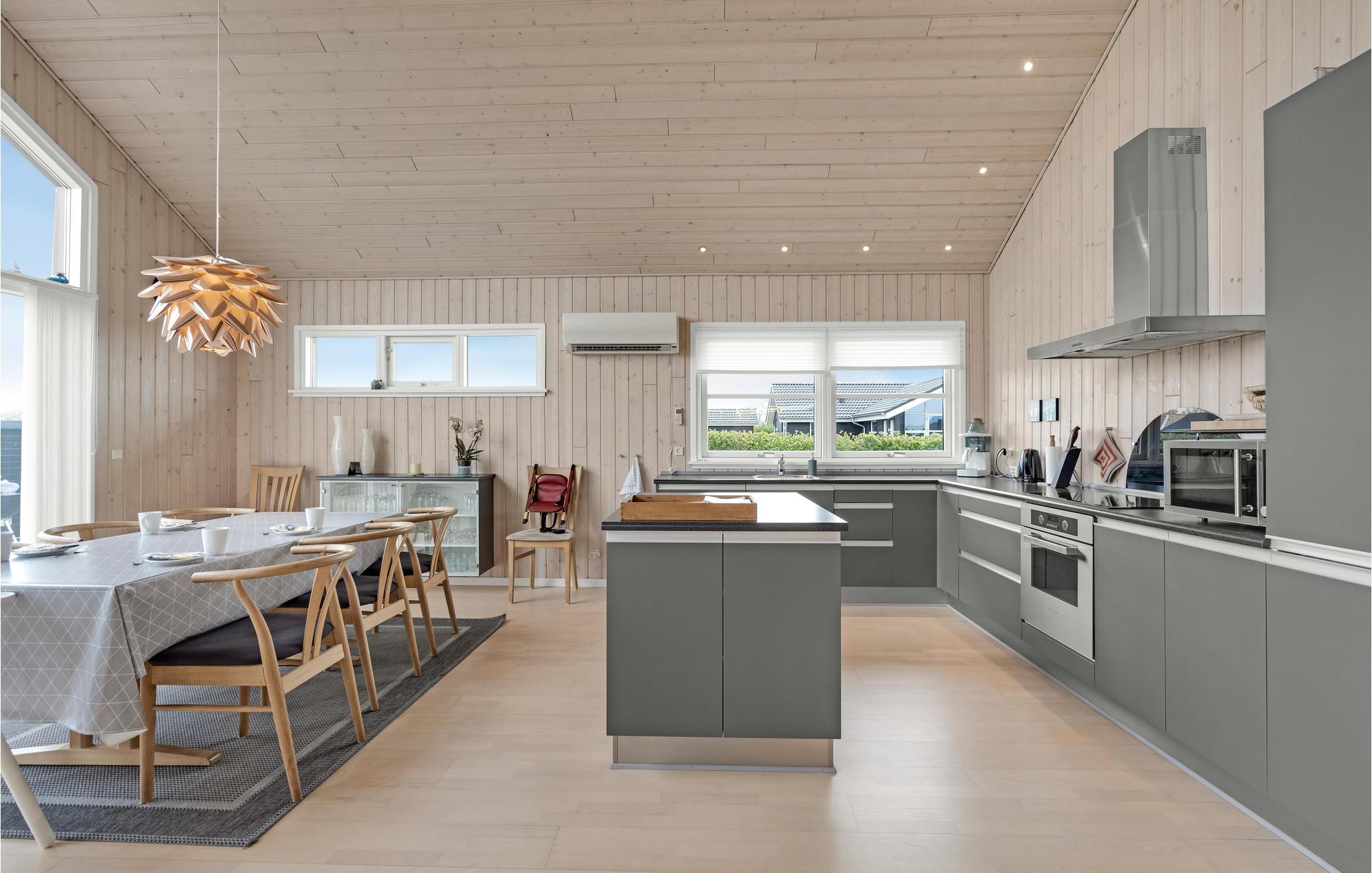 Hier trifft klassischer Sommerhaus-Charme auf eine wohnlich-moderne Einrichtung und helle, luftig wirkende Räume, in die durch große Panoramafenster viel Tageslicht gelangt. Entspannen Sie nach einem herrlichen Tag am Strand oder einem Ausflug in der Umgebung in der Sauna oder genießen Sie vor dem gemeinsamen Abendessen ein wohltuendes Bad im Whirlpool. In der behaglichen Sitzgruppe können Sie später noch lange gemütlich zusammensitzen, während der Kaminofen seine behagliche Wärme verströmt.