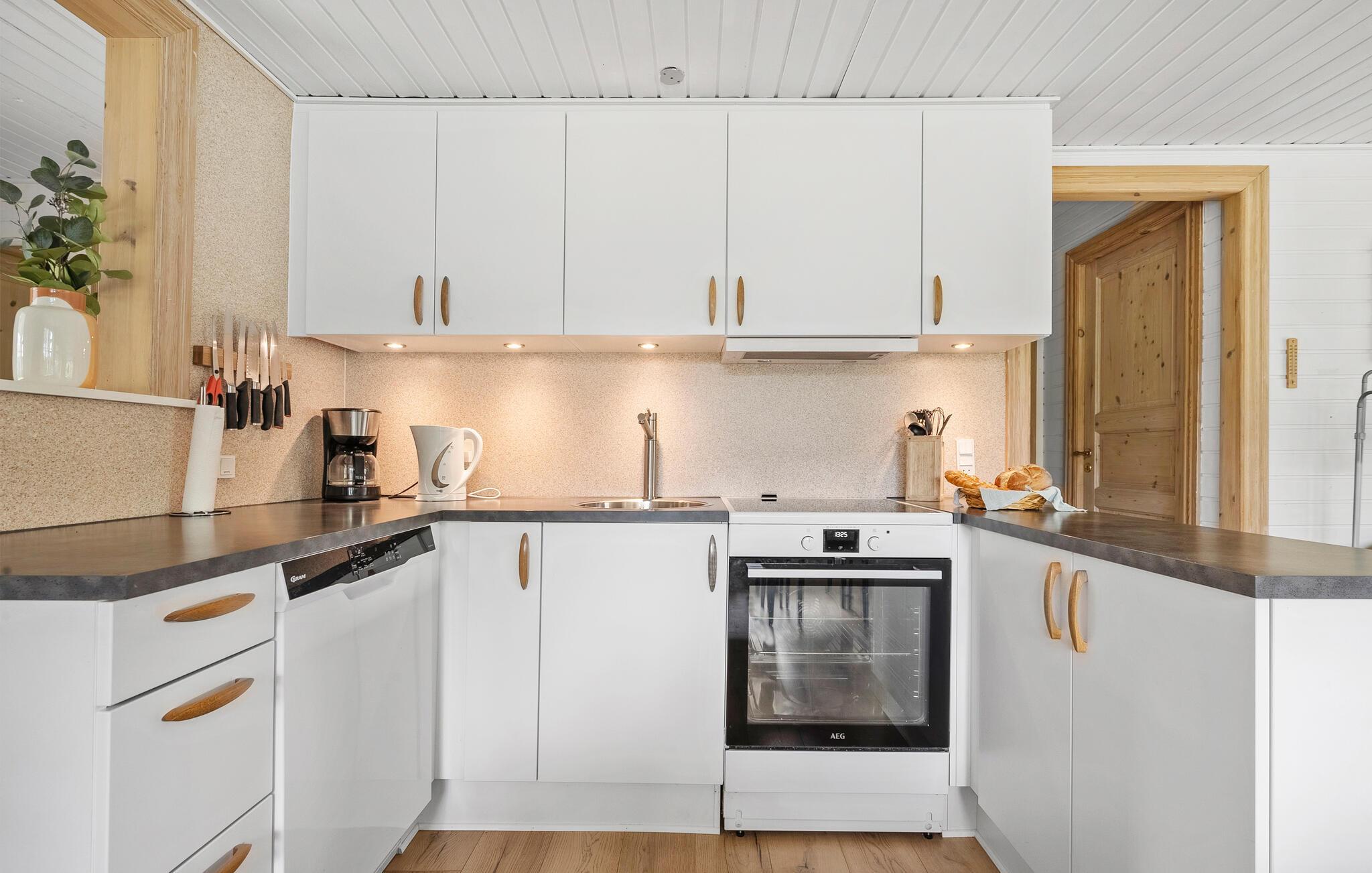 Die Kombination aus klarer Gestaltung und warmen Holzelementen verleiht diesem Haus eine harmonische Ausstrahlung. Ein Kaminofen sorgt für Gemütlichkeit, während die gut ausgestattete Küche zum gemeinsamen Kochen einlädt. Hier finden Sie einen Ort, an dem Sie zur Ruhe kommen und entspannte Tage verbringen können – egal ob Sie Musik hören, plaudern oder sich in der Sauna wärmen.