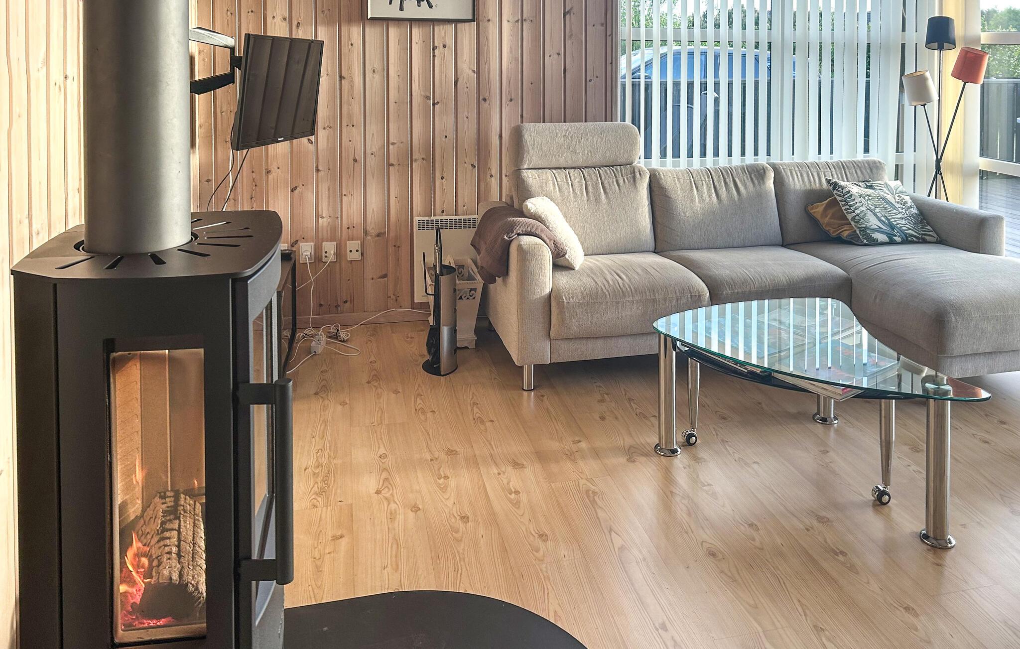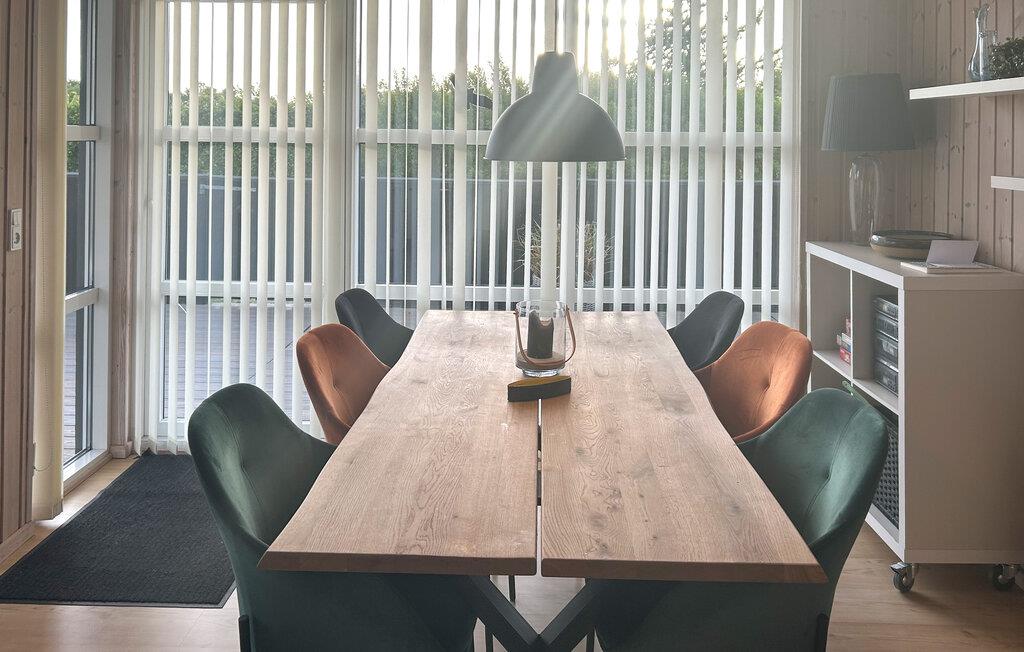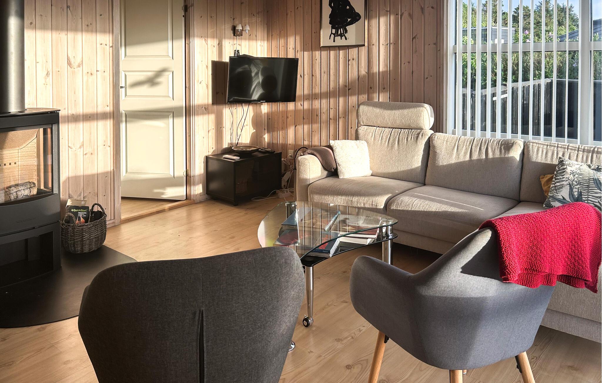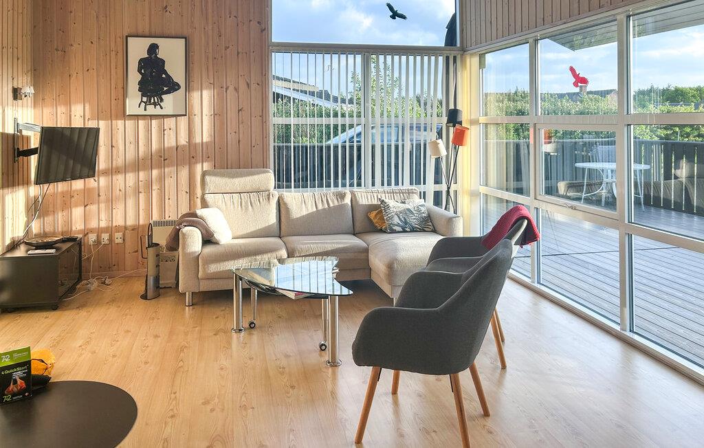 Verbringen Sie eine erholsame Zeit in diesem charmanten Ferienhaus. Die moderne, offene Küche lädt zum gemeinsamen Kochen ein, sei es mit der Familie oder mit Freunden. Der großzügige Wohnbereich mit seinen großen Fensterfronten bietet eine einladende Atmosphäre, um es sich auf den komfortablen Sitzgelegenheiten gemütlich zu machen und die freie Zeit zu genießen. Beenden Sie den Tag entspannt in der Sauna.