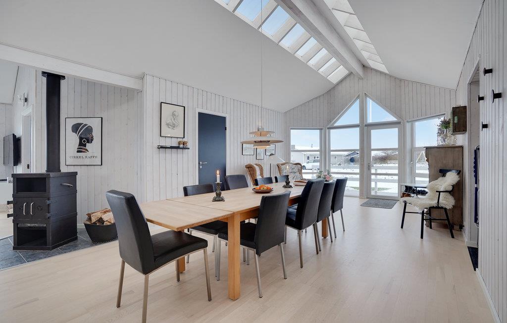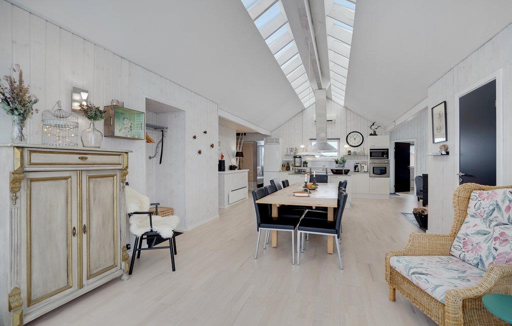 Erleben Sie einen erholsamen Urlaub in dem schön gelegenen Haus, von dem Sie zu Fuß bequem den Strand erreichen. Entspannen Sie nach Ihren Unternehmungen im Wohnbereich, der hell und geschmackvoll möbliert zum Verweilen einlädt. Nehmen Sie hier die Mahlzeiten mit schönem Blick ins Freie durch die bodentiefen Fenster ein und machen Sie es sich nach einem wohltuenden Saunagang auf einladenden Sofas am prasselnden Kaminofen bequem.
