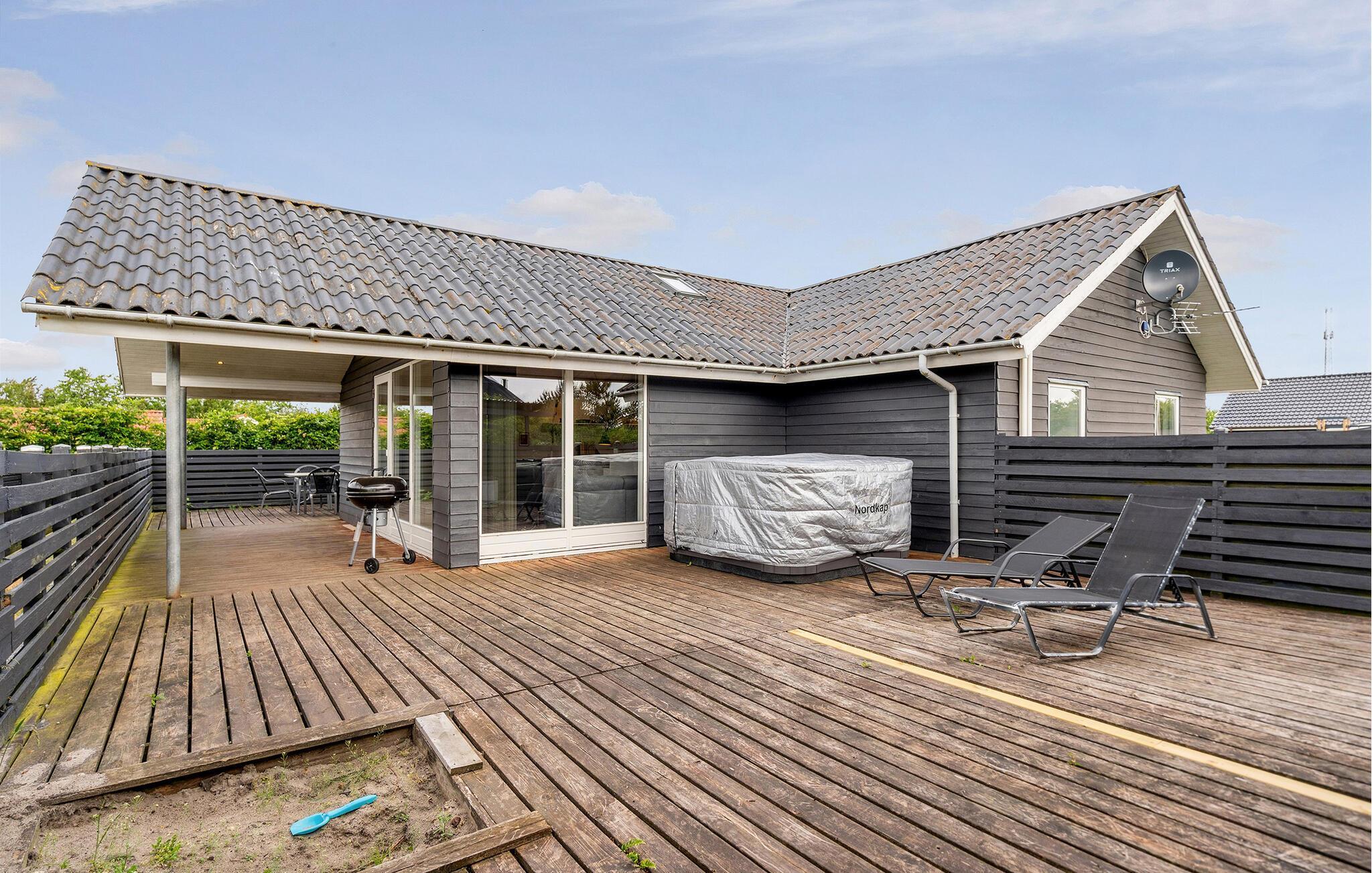 Genießen Sie Erholung in diesem charmanten Ferienhaus nahe dem Fjord mit Whirlpool, Sauna und großer Terrasse.