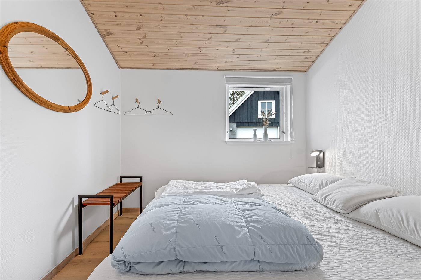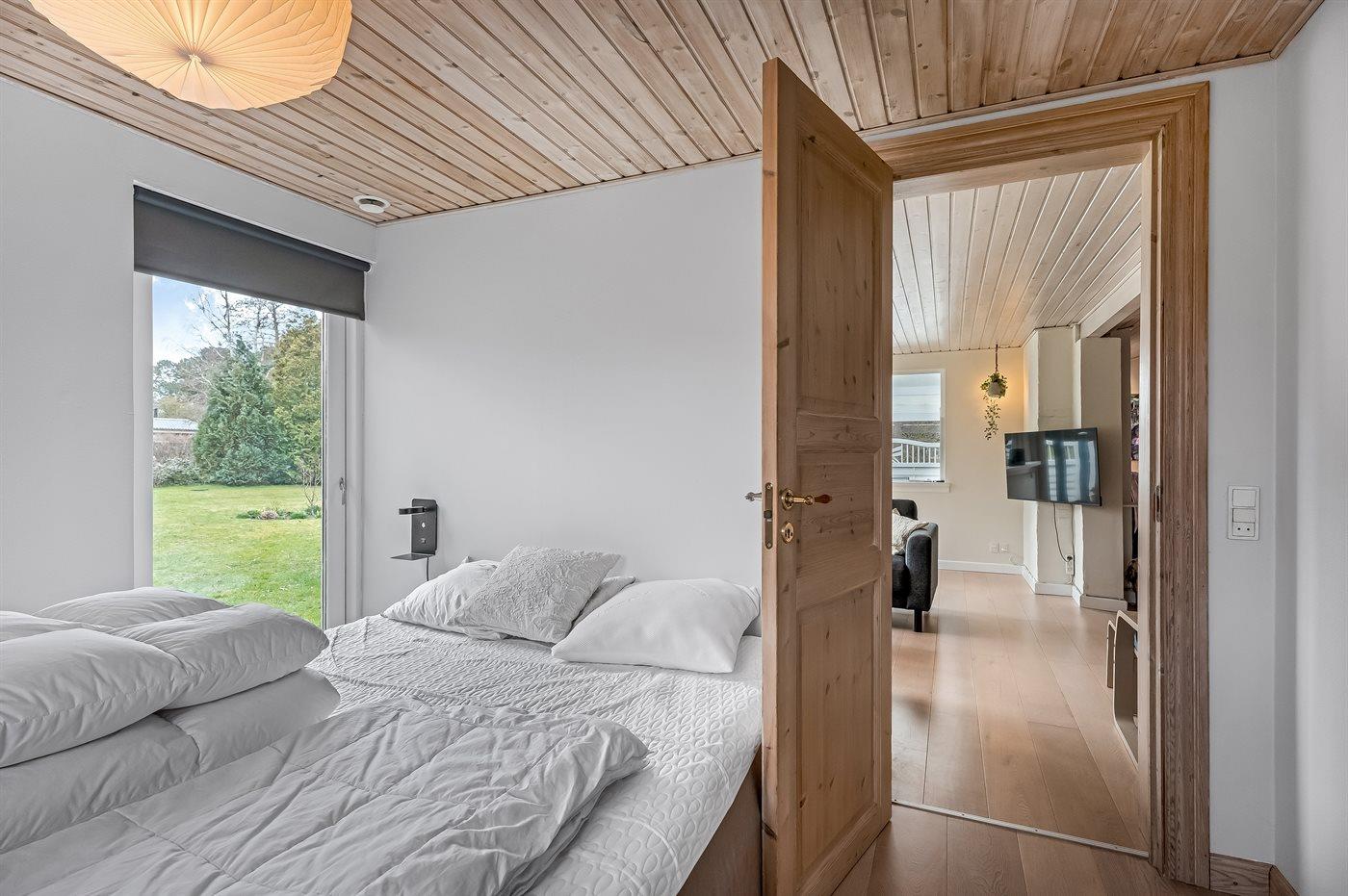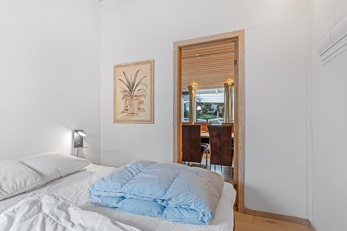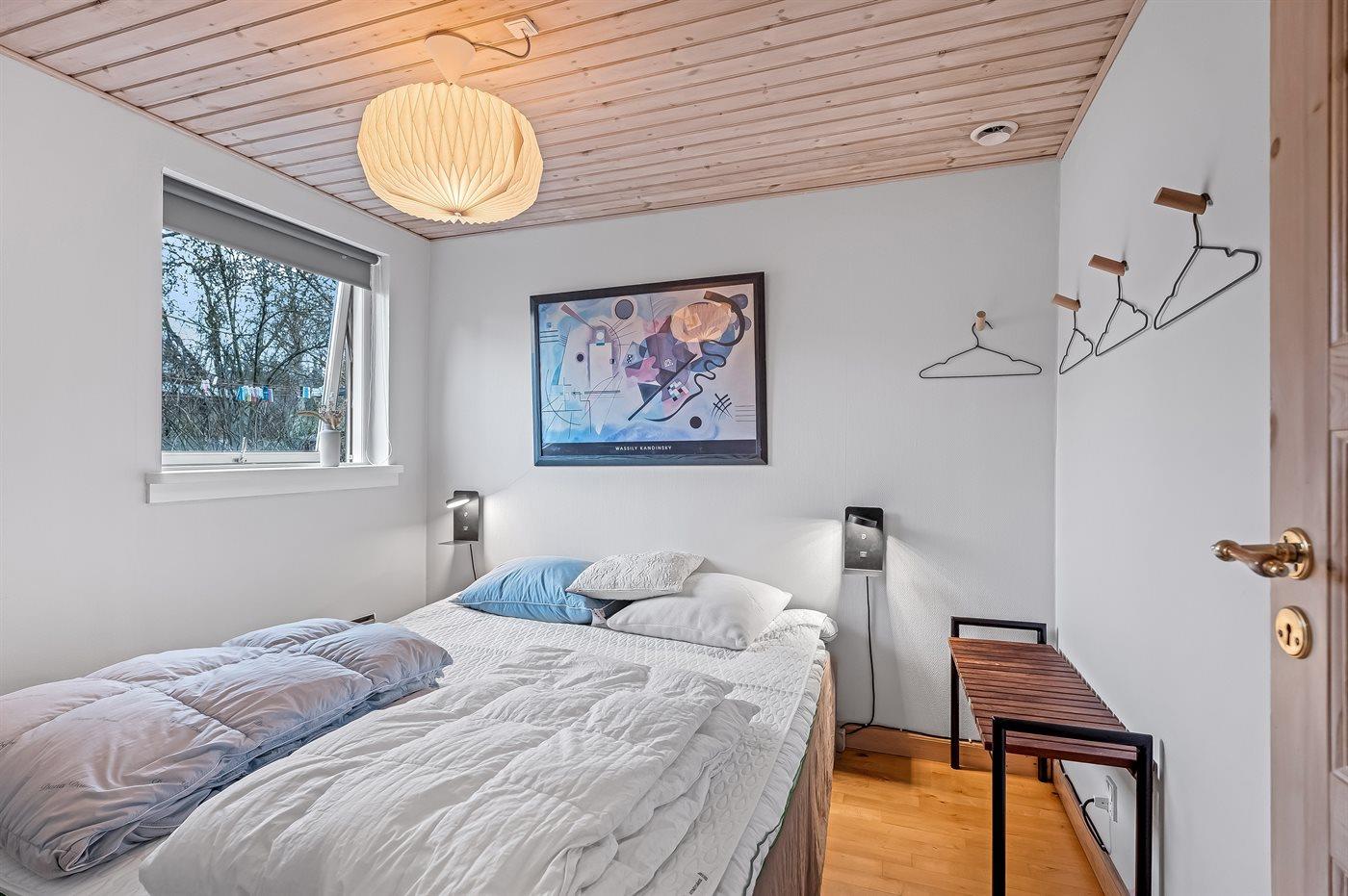Das Haus verfügt unter anderem über eine große, offene Küche, ein geräumiges Wohnzimmer mit Essecke sowie drei schöne Schlafzimmer, alle mit Doppelbett (es gibt keine Kleiderschränke in den Schlafzimmern). Vom Wohnzimmer aus gelangst du auf die überdachte Terrasse, wo du das Abendessen auf dem Grill zubereiten kannst. Im Garten gibt es viel Platz für Ballspiele und andere Aktivtäten im Freien.