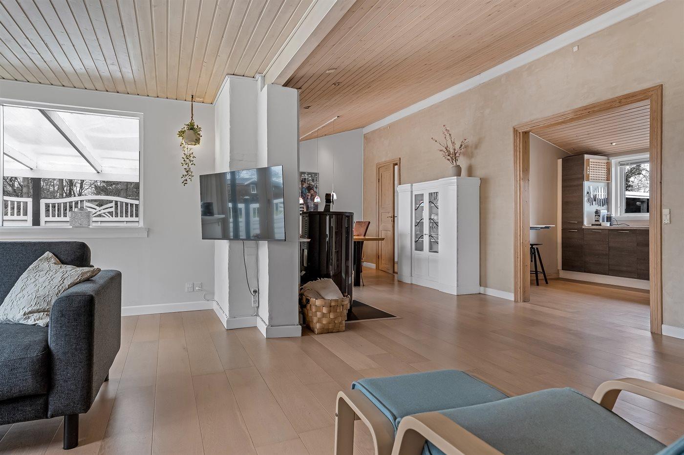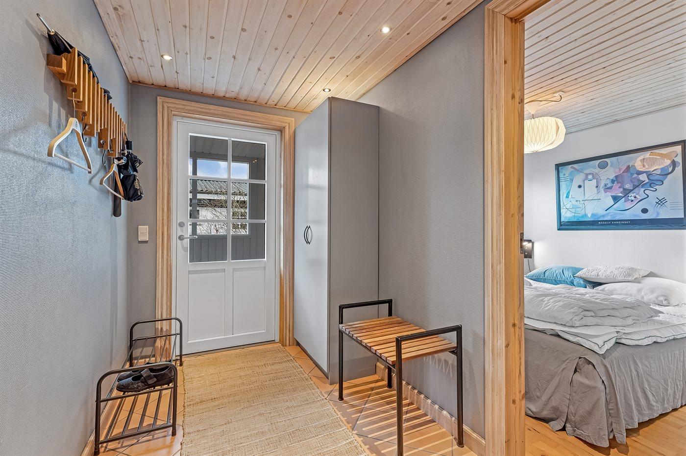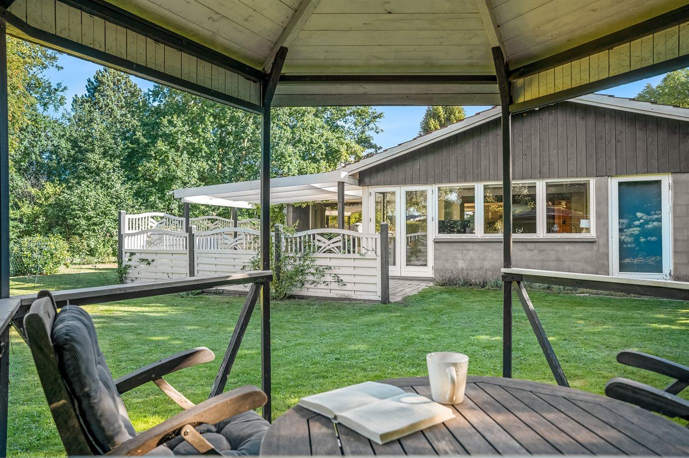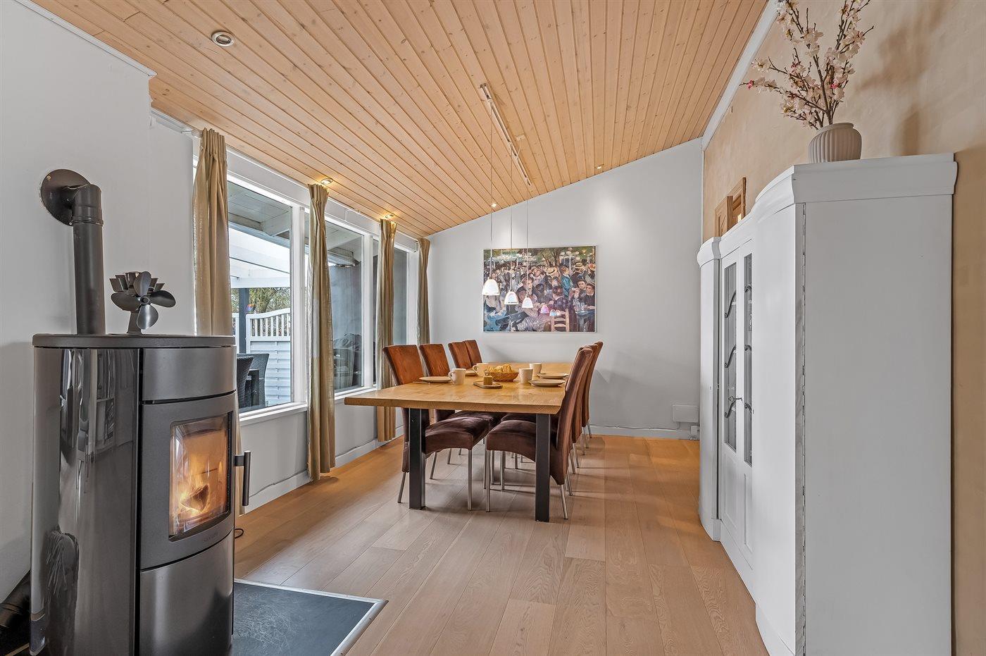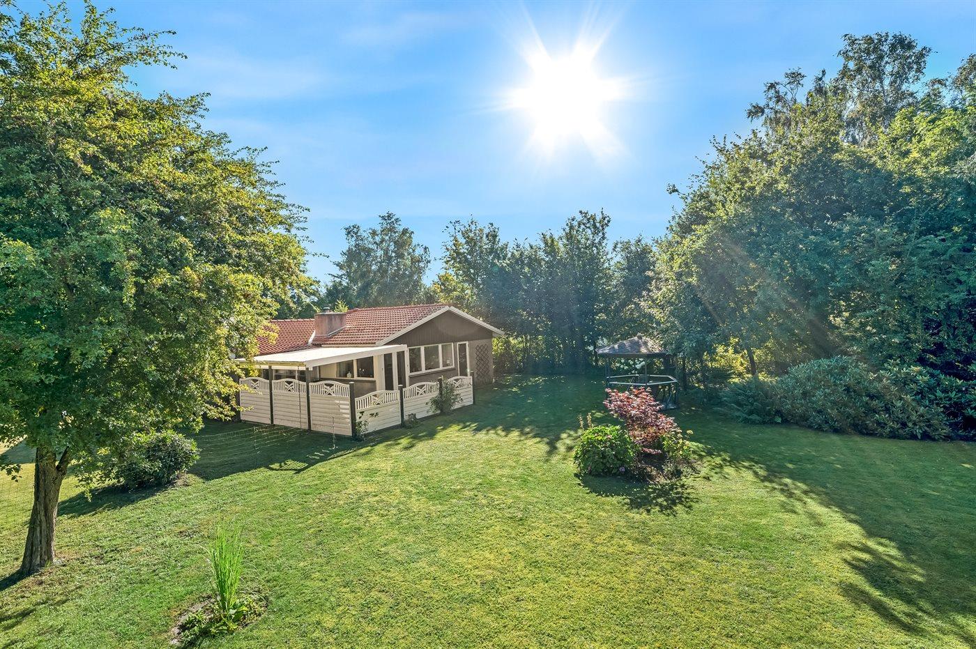 Das Haus verfügt unter anderem über eine große, offene Küche, ein geräumiges Wohnzimmer mit Essecke sowie drei schöne Schlafzimmer, alle mit Doppelbett (es gibt keine Kleiderschränke in den Schlafzimmern). Vom Wohnzimmer aus gelangst du auf die überdachte Terrasse, wo du das Abendessen auf dem Grill zubereiten kannst. Im Garten gibt es viel Platz für Ballspiele und andere Aktivtäten im Freien.