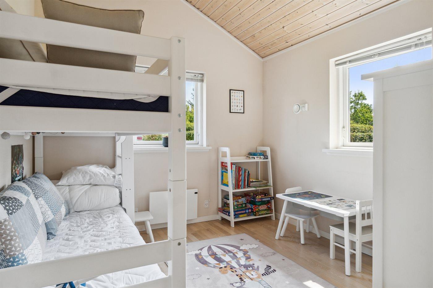 Die Schlafplätze verteilen sich auf 3 Schlafräume. 2 Schlafplätze in einem Doppelbett. 2 Schlafplätze in einem Etagenbett. 2 Schlafplätze auf einer Doppelschlafcouch. Ferner steht ein Kinderbett zur Verfügung.