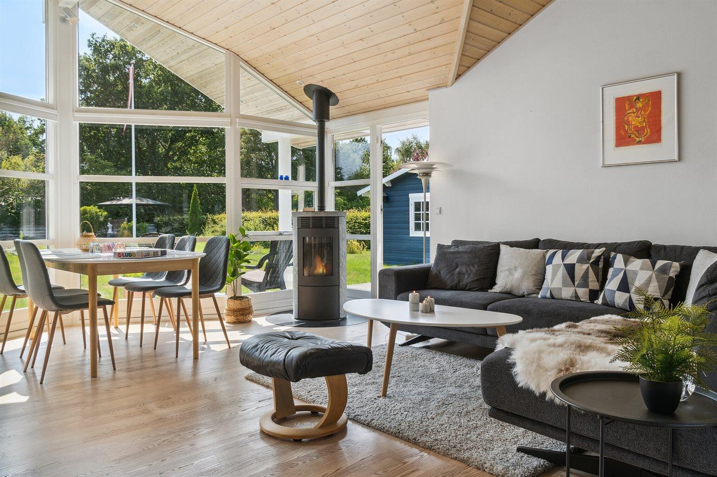 Die Ferienunterkunft liegt auf einem 1200 m² großen Naturgrundstück. Die Entfernung zum Fjord beträgt 200 m. Die nächste Einkaufsmöglichkeit liegt 3000 m entfernt. Es steht ein offenes Terrassenareal zur Verfügung. Geräteraum. Sandkasten. Trampolin.Lagerfeuerstelle. Es steht ein Grill zur Verfügung. Es steht ein Carport zur Verfügung. Parkplatz auf dem Grundstück.