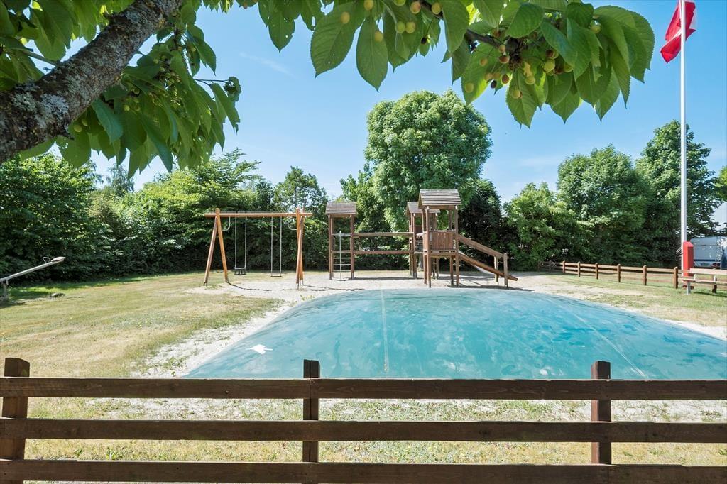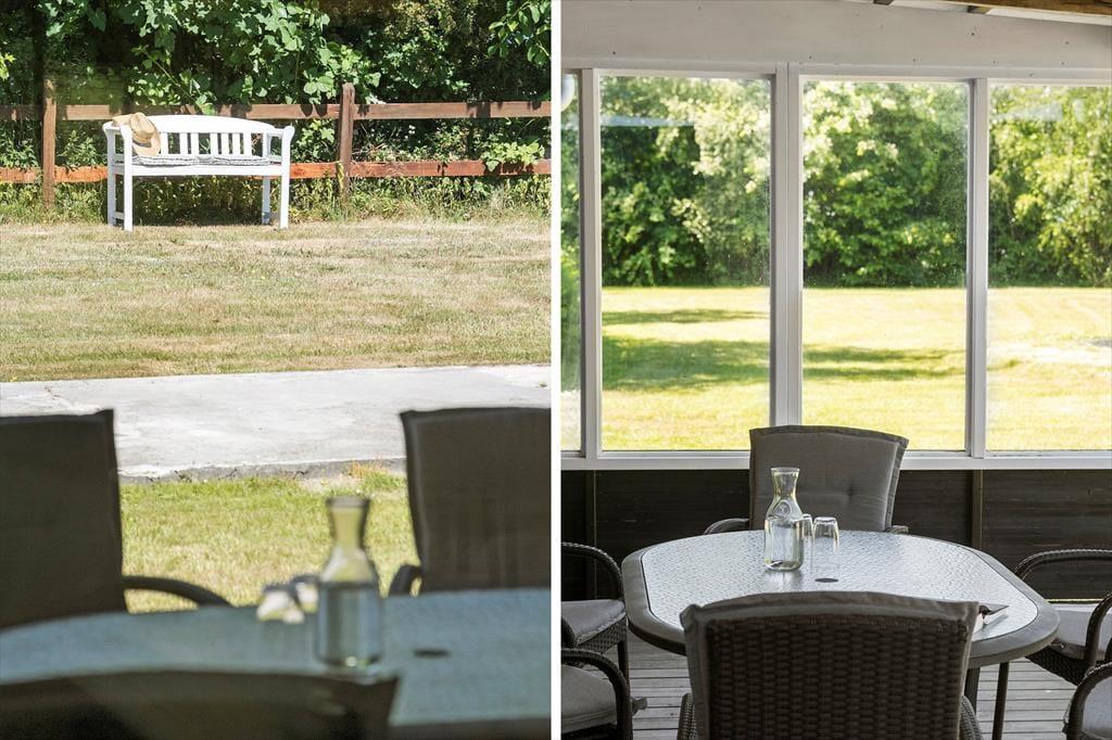 Sobald die ersten Sonnenstrahlen vom Himmel lachen, können Sie Ihr Urlaubsleben sehr schön ins Freie verlegen. Sie haben die Wahl zwischen zwei überdachten Terrassen. Eine der Terrassen verwöhnt Sie mit einem Ausblick auf den Fjord. Die große Grünfläche im Garten lädt Ihre Kinder zum ausgelassenen Umhertollen und zu Ballspielen jeglicher Art ein. Für viel Spaß.